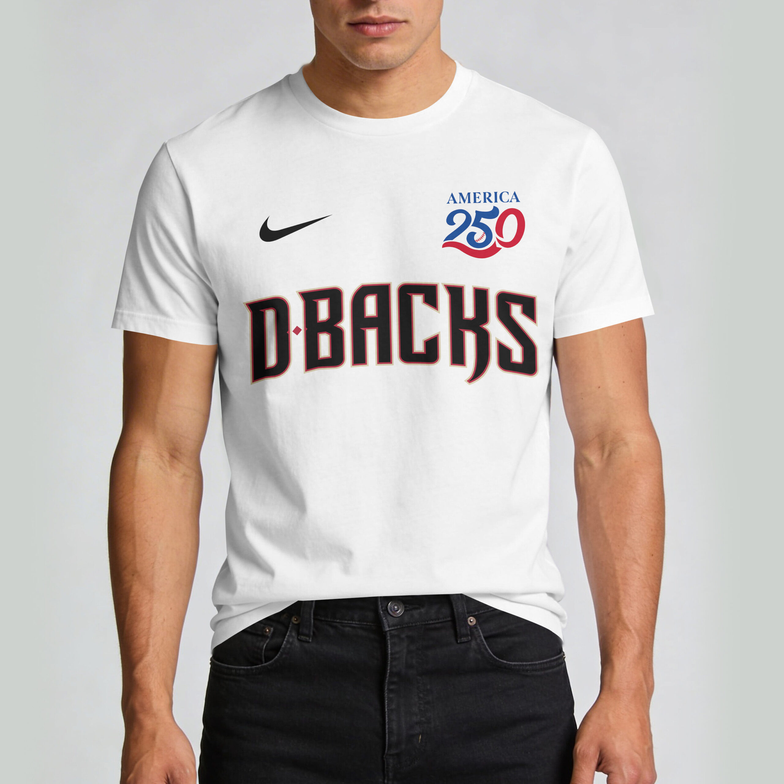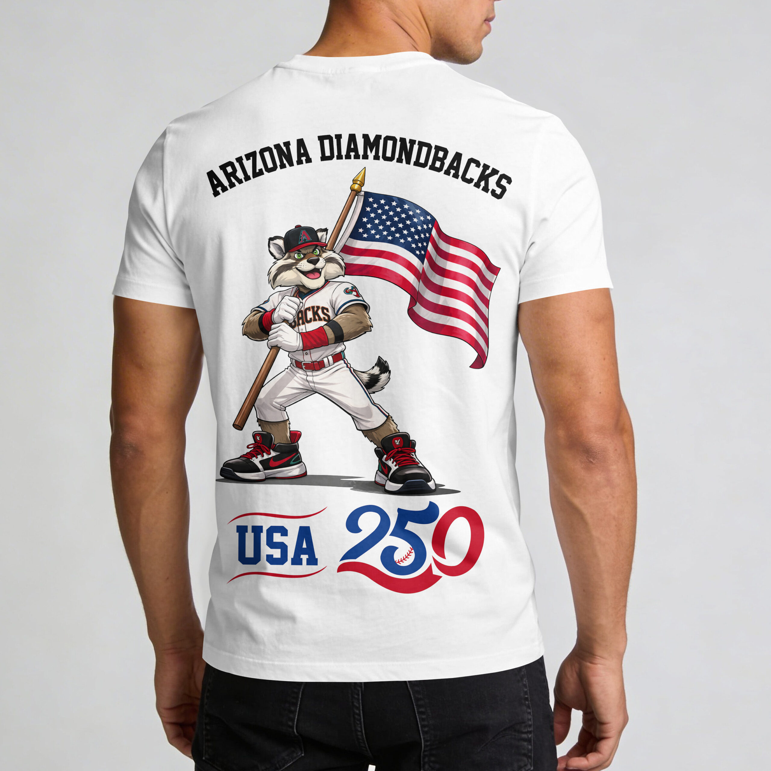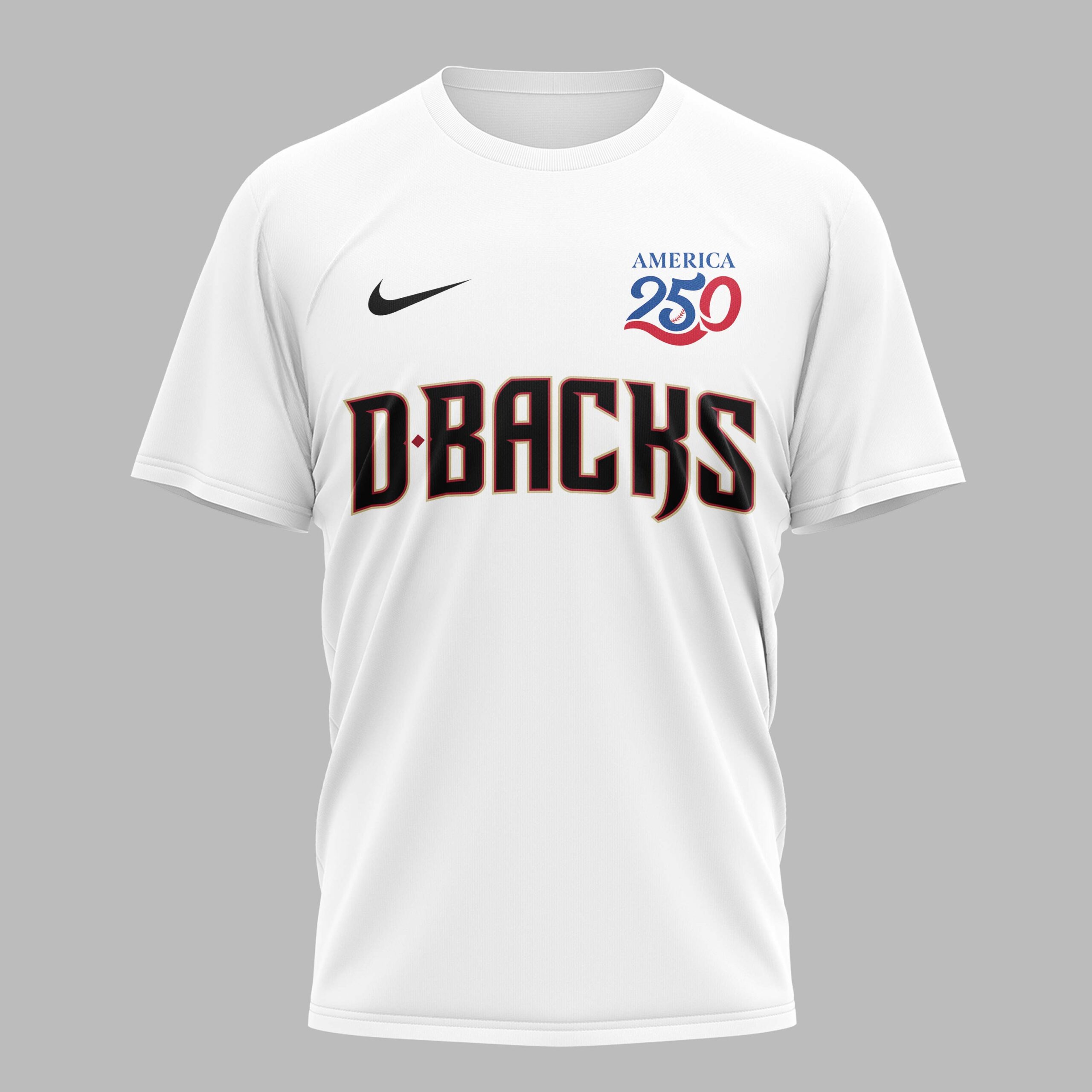 Unleash your Arizona Diamondbacks pride and celebrate America’s historic 250th anniversary with this electrifying fan tee! It’s the ultimate way for dedicated D-backs fans to display loyalty, honoring the nation’s independence in true patriotic style. Cheer on your team with an extra dose of American spirit! The front proudly showcases DBACKS in bold lettering, alongside the AMERICA 250 emblem with a baseball integrated into the design. The back graphic features a fierce Diamondbacks mascot swinging a bat and waving a majestic American flag, beneath ARIZONA DIAMONDBACKS and the prominent USA 250 commemorative mark. Perfect for game days at the ballpark, Independence Day celebrations, or everyday fan wear, this tee lets you flaunt team and country pride. A must-have for every fan ready to represent the Arizona Diamondbacks and the USA.