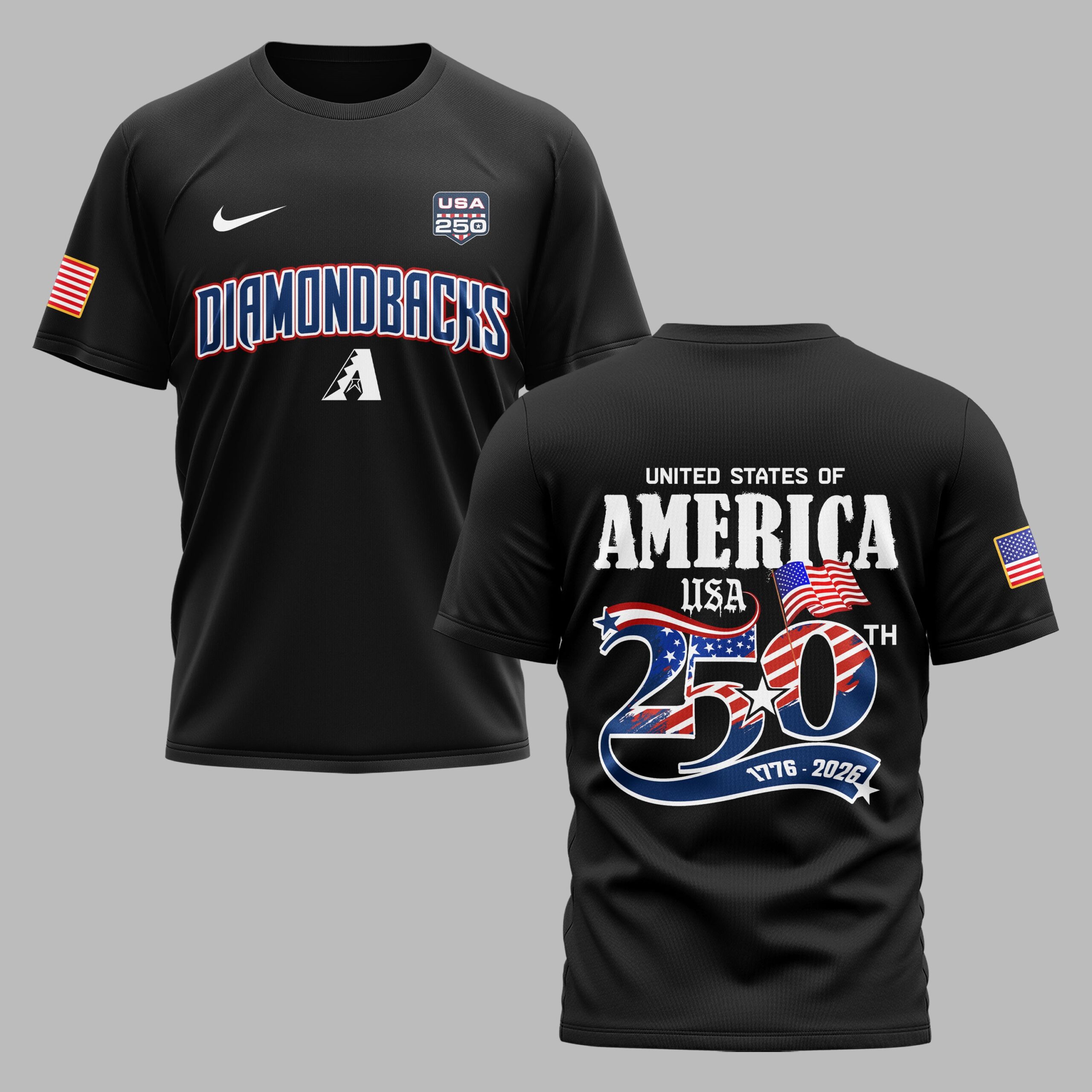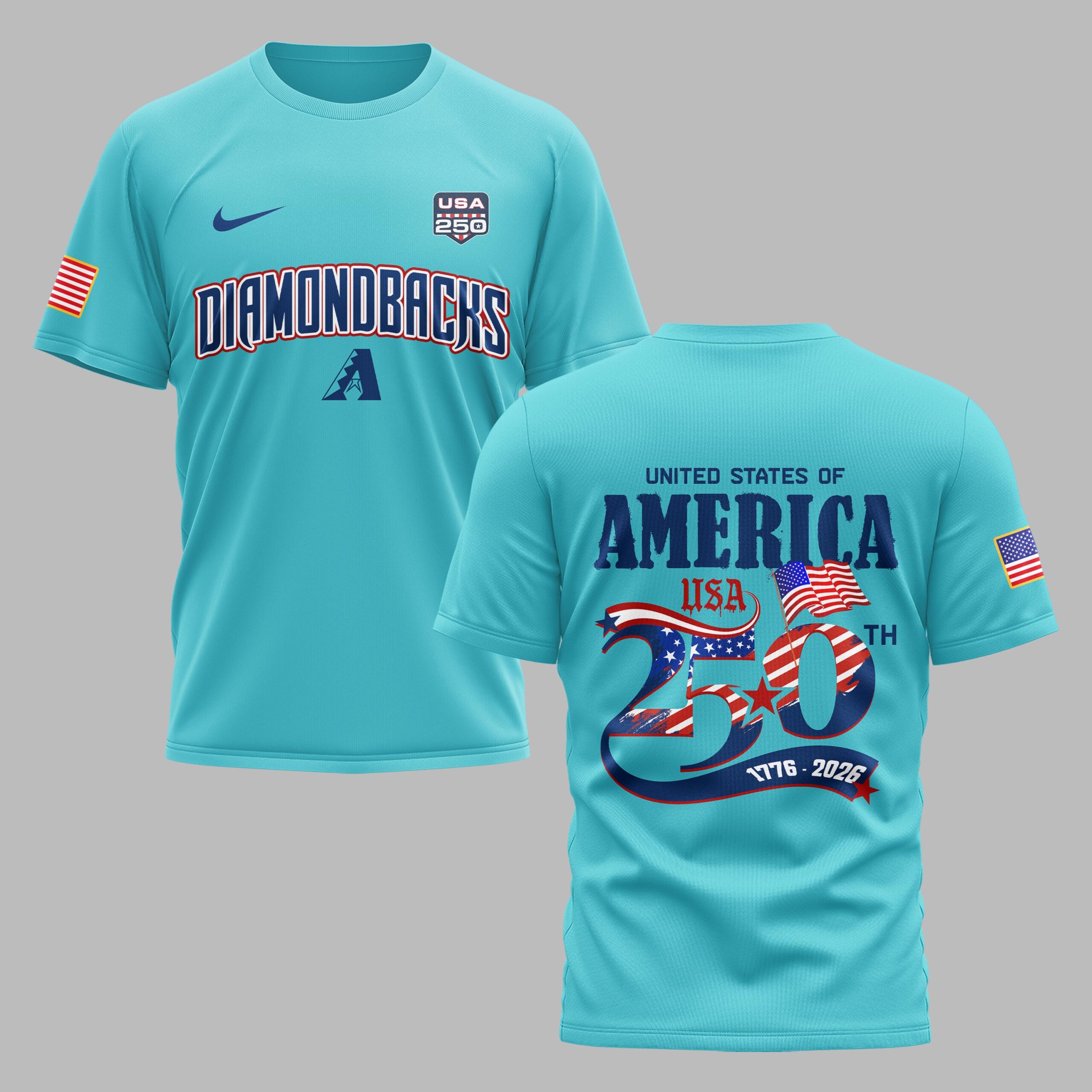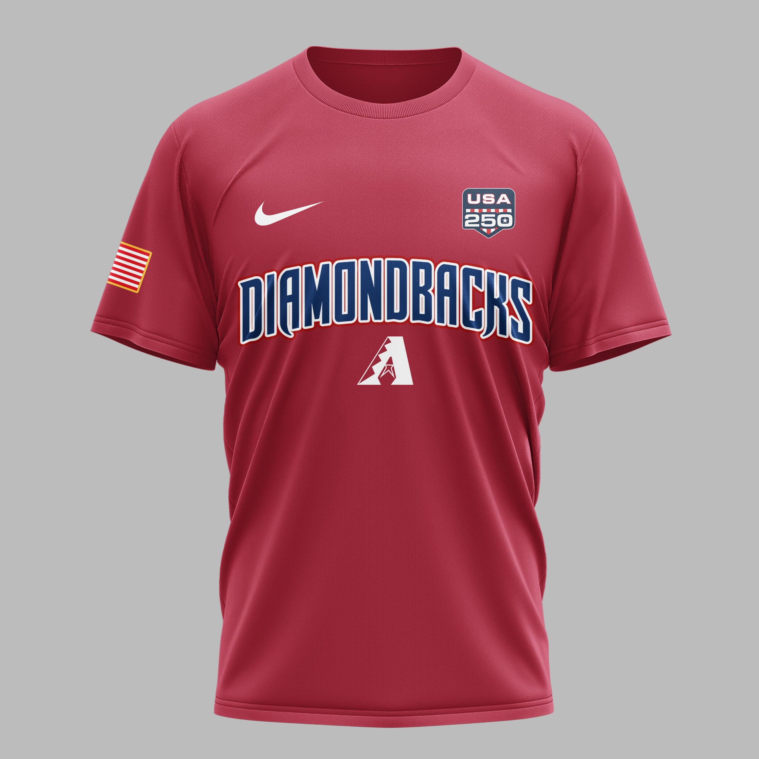 Arizona Diamondbacks USA 250 Independence Baseball Fan T-Shirt Showcase your dual passion for the Arizona Diamondbacks and the red, white, and blue with this special edition fan T-shirt. Designed to commemorate the 250th anniversary of the United States, this bold red tee combines legendary desert baseball pride with a deep sense of national celebration. It’s the perfect way to honor history while supporting your favorite team as they take the field. The front features the iconic Diamondbacks wordmark and A logo alongside a commemorative USA 250 badge and American flag sleeve detail. On the back, a stunning graphic celebrates the Semiquincentennial with United States of America and a large, star-spangled 250th design highlighting the years 1776–2026. Every detail, from the vibrant flag imagery to the patriotic stars, makes this a standout piece for any true fan. Whether you’re heading to Chase Field for a summer day game, hosting a Fourth of July barbecue, or showing off your team spirit around town, this shirt is built for the moment. It’s an essential addition for Independence Day festivities and everyday fan wear.