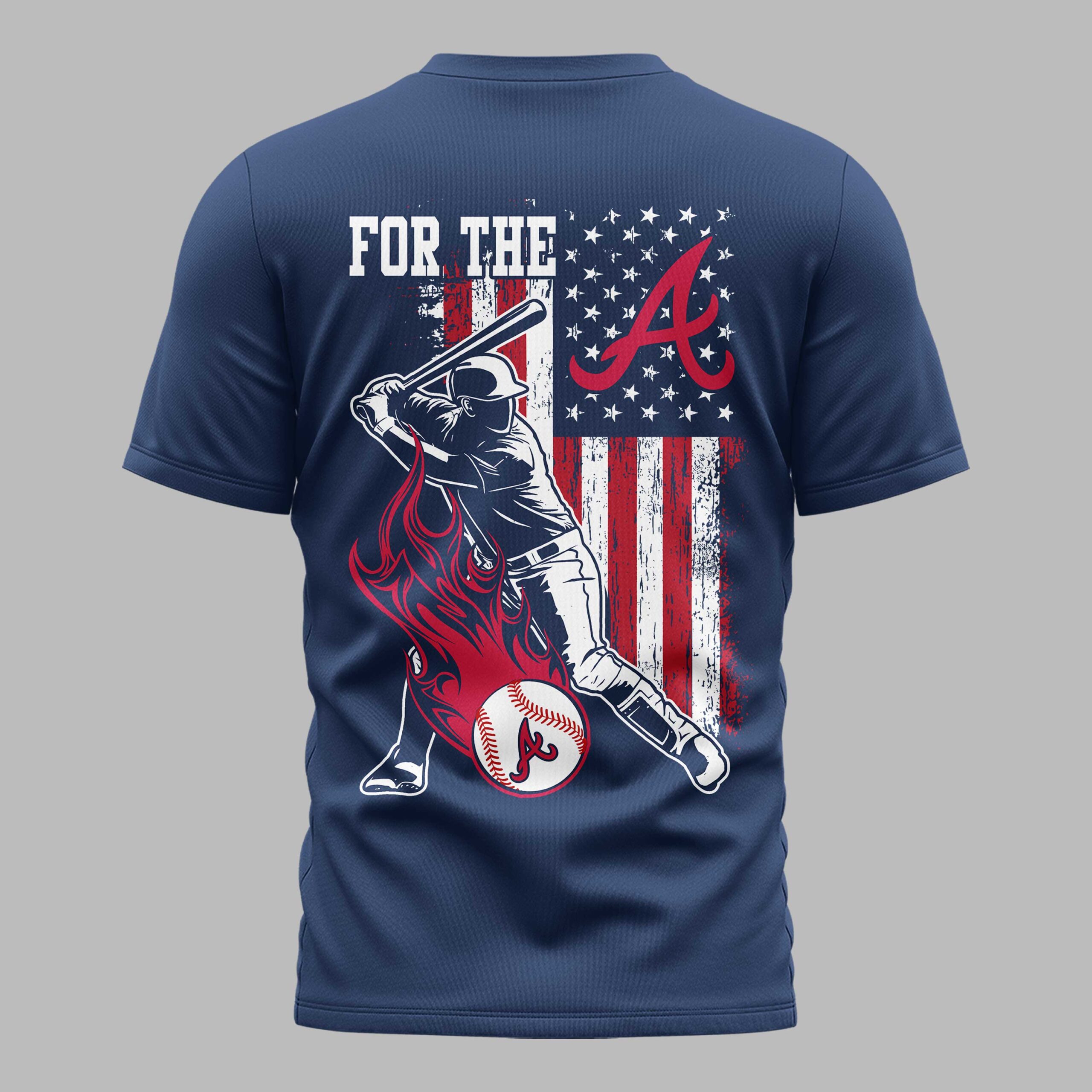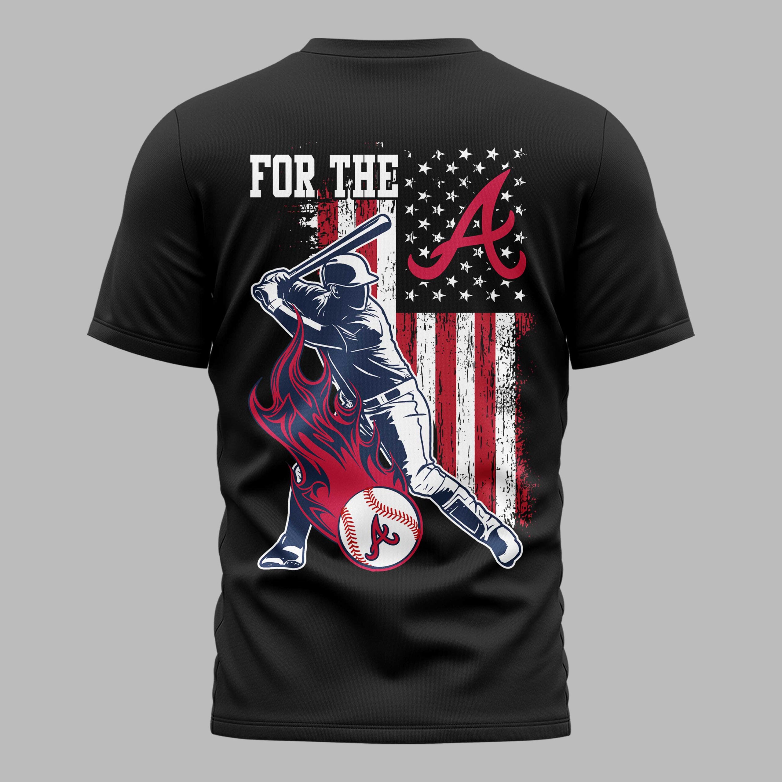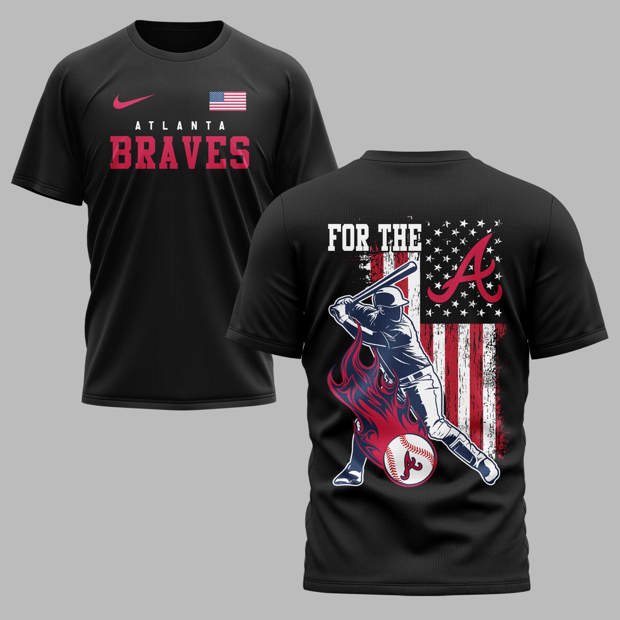Ignite your passion for baseball and country with this dynamic Atlanta Braves Patriot Flag T-Shirt! Designed for the ultimate fan, this shirt powerfully blends your love for the Braves with a proud display of American spirit, making it a must-have for game days and patriotic celebrations. The front proudly showcases ATLANTA BRAVES in bold lettering beneath a classic American flag graphic. Turn heads with the back design featuring a distressed American flag backdrop, beautifully adorned with the iconic A logo and a fierce baseball batter mid-swing. The FOR THE text above and the flaming baseball below add an extra spark of energy, celebrating every powerful hit. This vibrant tee is perfect for cheering on the Braves at the ballpark, hosting a game day party, or simply showing off your team and national pride any day of the week. Wear it to Memorial Day gatherings, Fourth of July festivities, or during any thrilling baseball match. Go Braves!