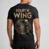 Embrace your passions with this unique Atlanta Braves Fourth Wing fan tee! Blending team pride with epic fantasy, it’s perfect for supporters of baseball thrills and mythical sagas. This shirt makes a bold statement of loyalty and distinctive style. The front displays Braves in striking gold script, with the iconic A logo in a regal crest on a sleek black background. The back features FOURTH WING text above an intricate golden circular graphic. This artwork depicts a majestic dragon-like creature among clouds and patterns. Ideal for cheering at the ballpark, uniting with fantasy enthusiasts, or adding bold elegance to your daily wear. Wear this tee for game days, social events, or merge Braves fandom with a legendary touch.