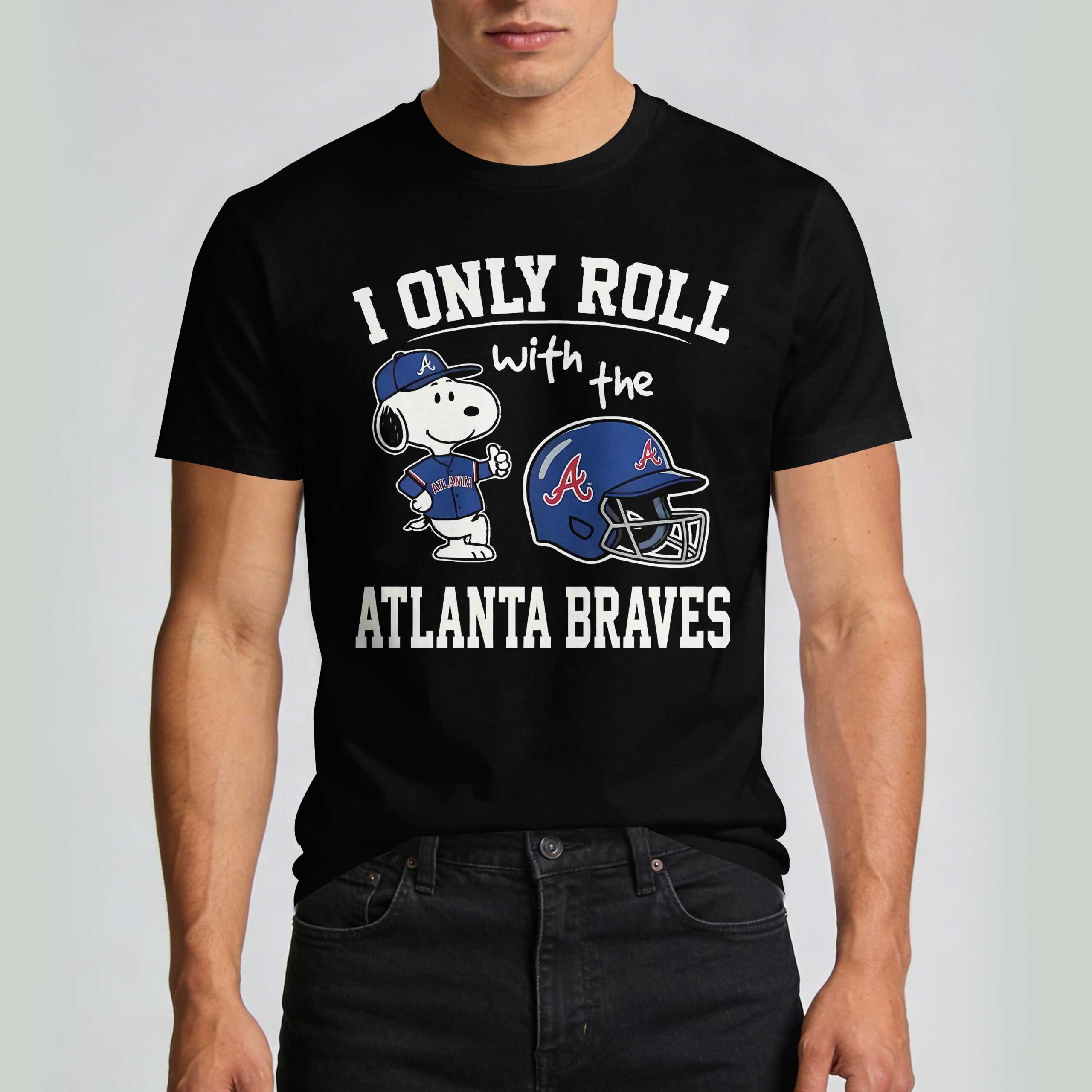Show off your unwavering loyalty to the Atlanta Braves with a shirt that blends classic team pride and iconic style. This design captures the spirit of a true fan who sticks with their team through every single inning. Whether you’re a lifelong supporter or a new fan, this tee is the perfect way to showcase your dedication to one of baseball’s most storied franchises during any patriotic celebration. The front features the beloved Snoopy decked out in Braves gear, giving a thumbs-up next to a bold team helmet. Accompanied by the spirited slogan I Only Roll With The Atlanta Braves, the graphic uses signature colors to make a big statement. The back is kept clean and simple, ensuring all eyes remain on the fun artwork and team name prominently displayed on the front. This tee is ideal for game days at the ballpark, Independence Day celebrations, or everyday wear. It’s a must-have for any Atlanta fan looking to combine their love for the game with a touch of nostalgia and American pride.