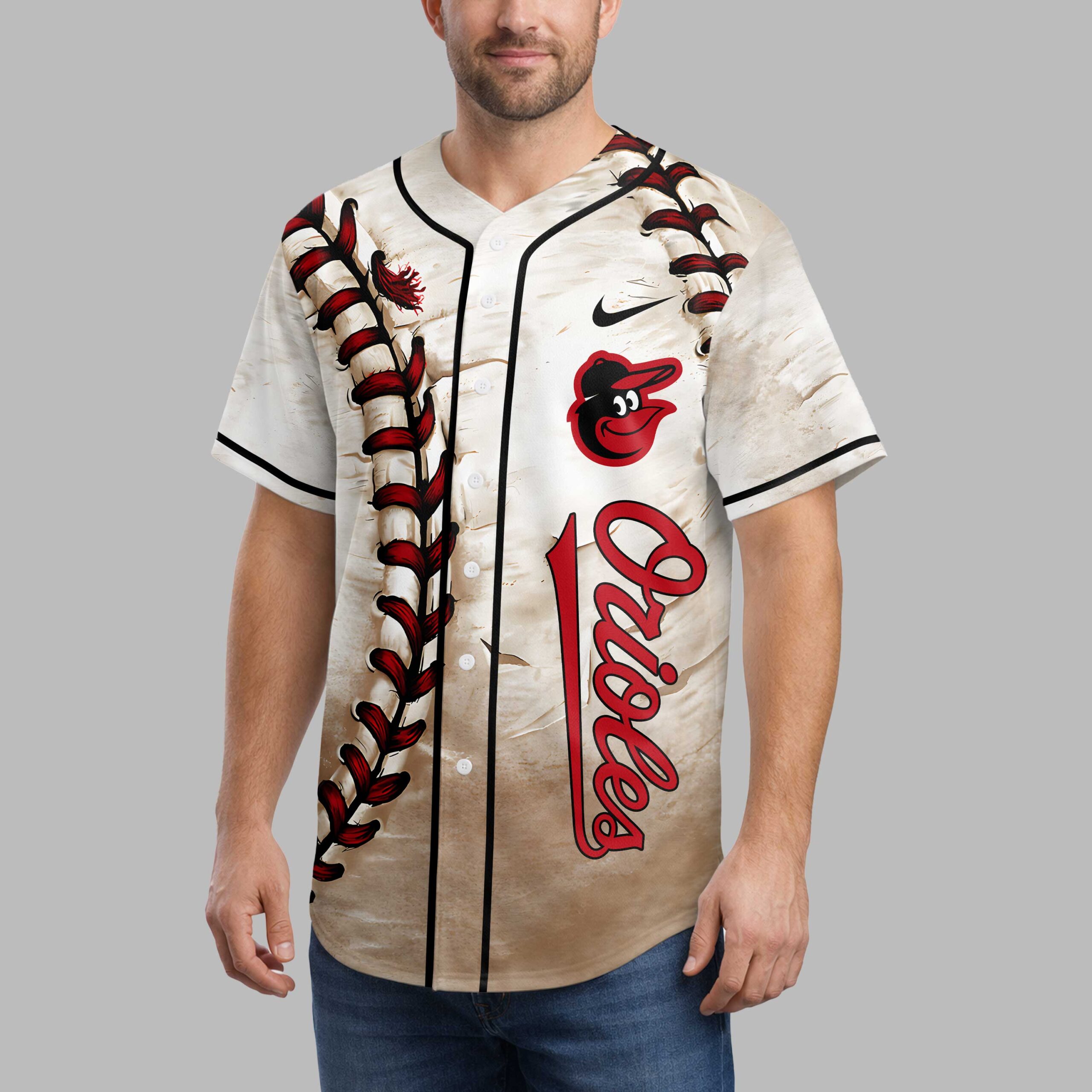 Step up to the plate and proudly display your Baltimore Orioles spirit with this eye-catching custom baseball jersey! This unique design lets you celebrate your favorite team with an authentic, distressed look that captures the essence of classic baseball. This striking jersey boasts a faded, worn-in appearance, reminiscent of a well-loved classic. The front prominently displays a large baseball stitching graphic and the legendary Orioles bird logo, alongside the team name. The back continues this rustic charm with simulated wear and tear, featuring a personalized ‘Your Name’ and your chosen number, intricately filled with baseball stitch details. Whether you’re catching a game at the stadium, hosting a backyard barbecue, or just running errands, this jersey is ideal for showcasing your Orioles passion. It’s the ultimate fan gear, blending timeless style with personalized flair for every season.