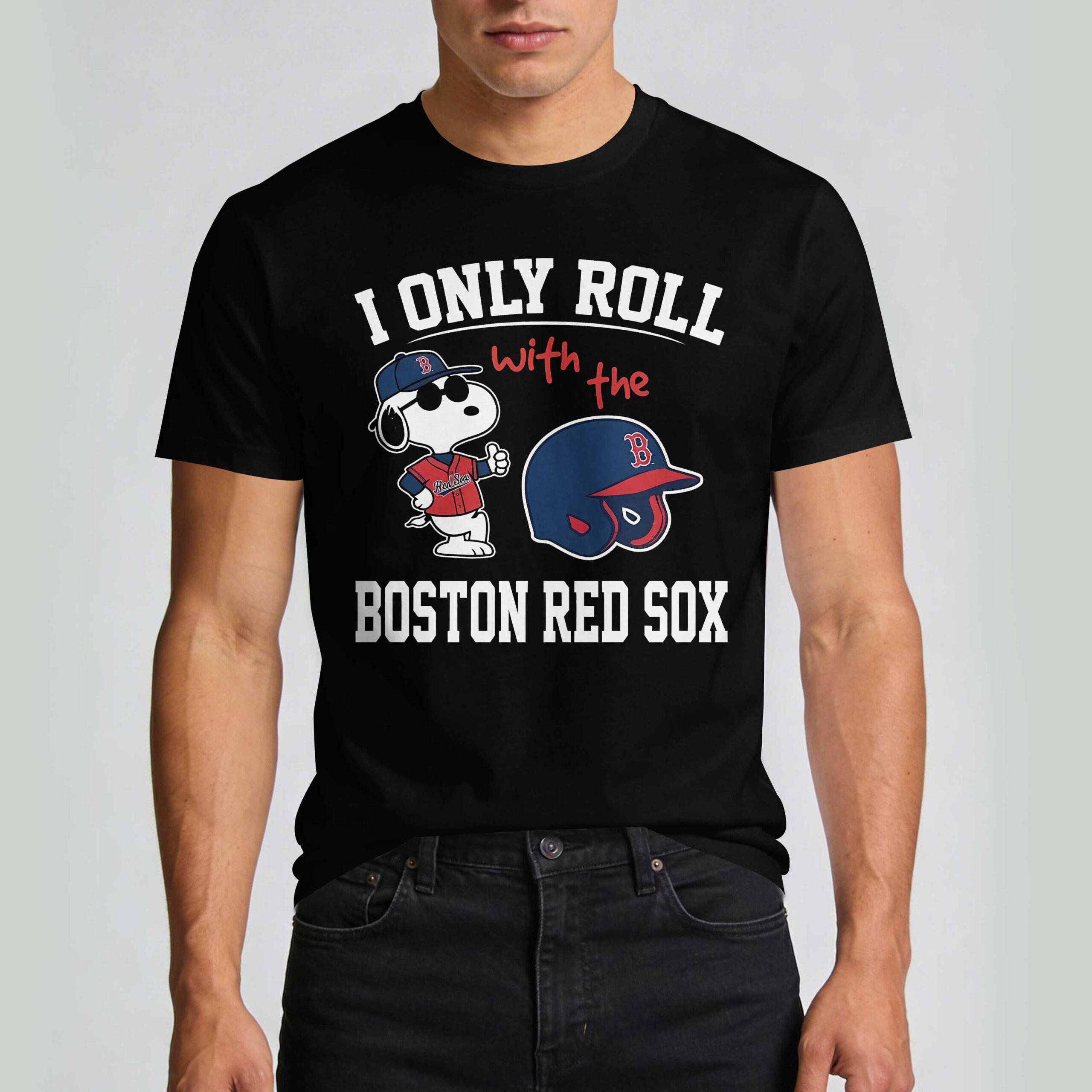 Pledge your ultimate allegiance to the Boston Red Sox with this fun and spirited fan T-shirt! Perfect for every devoted supporter, this tee combines classic baseball pride with a beloved character, making it a standout piece for game days or everyday wear. Show the world exactly where your loyalty lies. The front of the shirt features an irresistible design with Snoopy, America’s favorite beagle, decked out in a crisp Red Sox jersey and cap, giving a confident thumbs-up. Right beside him, a classic Boston Red Sox baseball helmet proudly showcases the iconic B logo. Boldly printed above and below the graphic is the clear statement: I ONLY ROLL with the BOSTON RED SOX. The back of the shirt is plain black. Whether you’re heading to Fenway Park, watching the game with friends, or just running errands around town, this T-shirt is ideal for showcasing your Red Sox passion. It’s a fantastic way to celebrate your favorite team and share your team spirit with a touch of nostalgic charm.