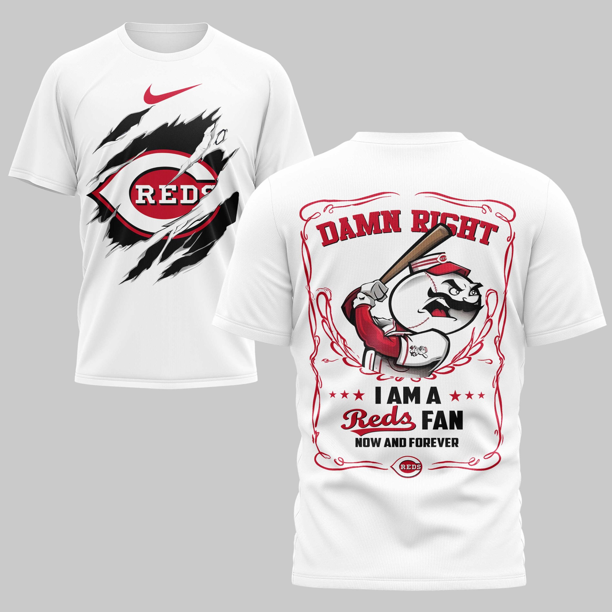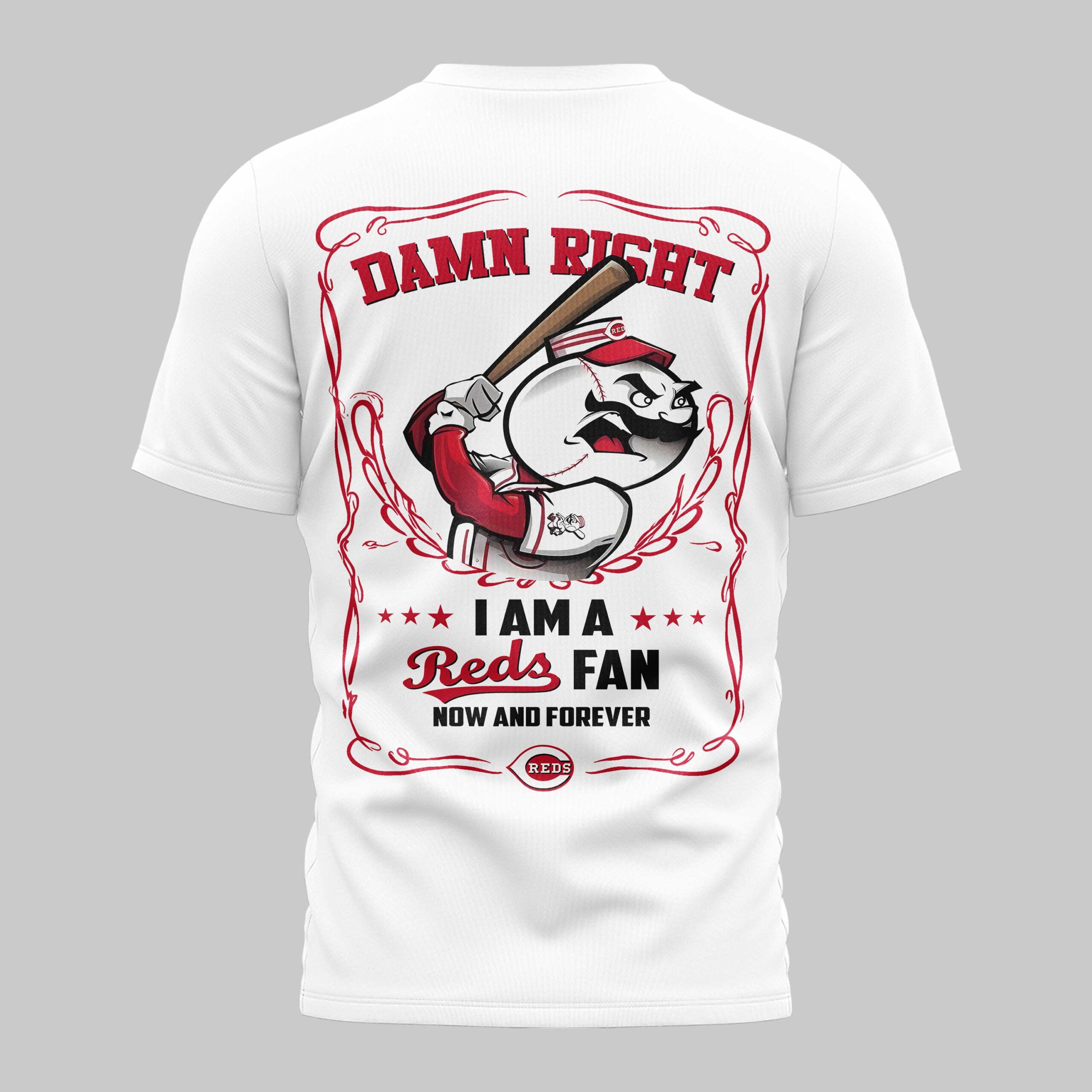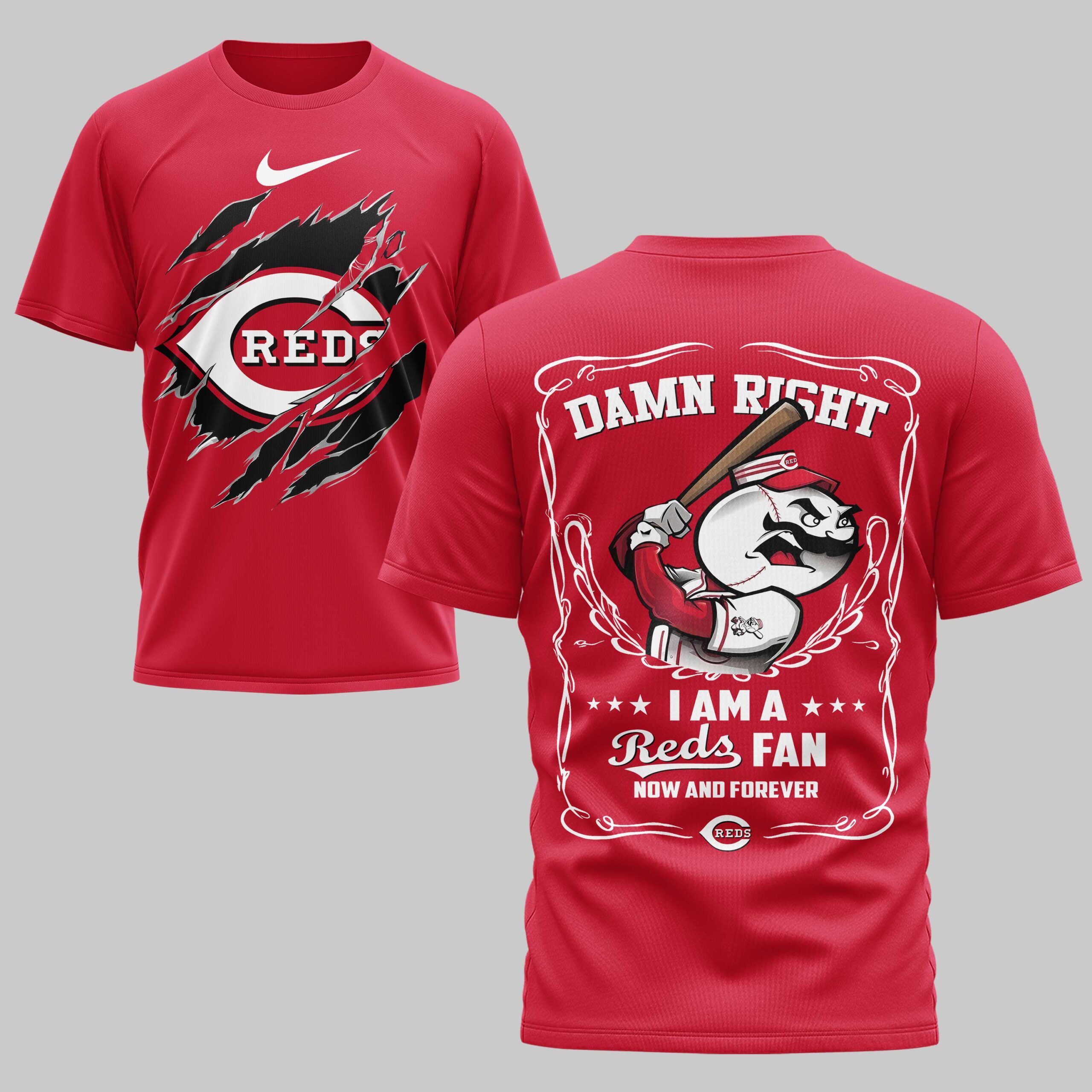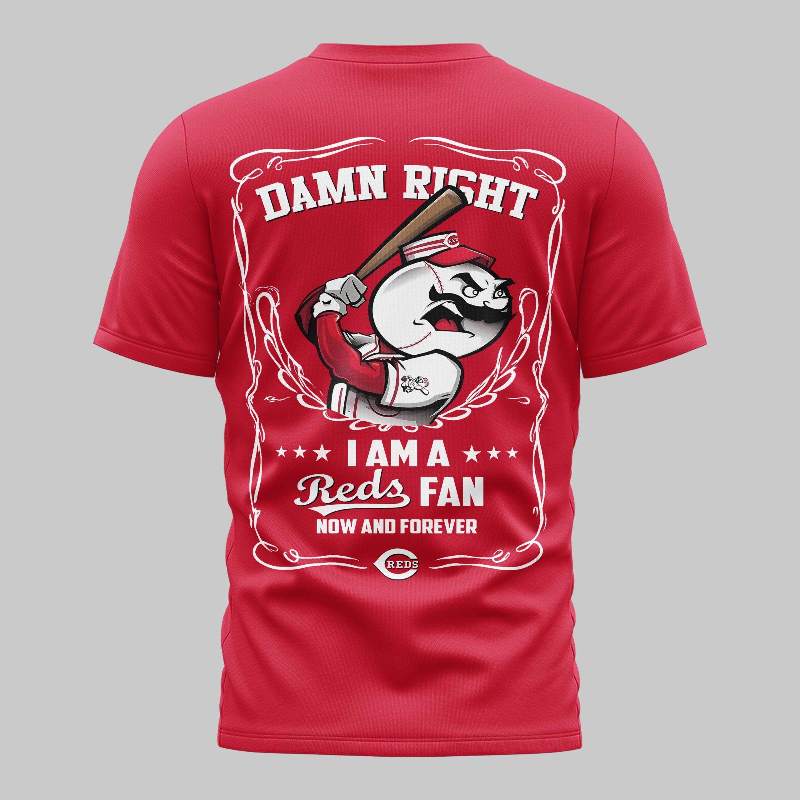 Unleash your ultimate Reds pride with this dynamic fan tee, perfect for showing your unwavering loyalty! This shirt isn’t just apparel; it’s a bold declaration of your dedication to the team, designed for the most passionate baseball enthusiasts. Feel the thrill of game day every time you wear it, celebrating every hit, every out, and every victory with true Cincinnati spirit. The front features a striking ripped design, revealing the iconic Reds logo bursting through, symbolizing your fierce team spirit. Turn around and the back proudly declares DAMN RIGHT I AM A Reds FAN NOW AND FOREVER, framed by an ornate design and featuring a determined baseball character ready to swing for the fences. Every detail screams allegiance and passion. Whether you’re cheering from the stands, watching the game at home, or just out and about, this shirt is your go-to for showcasing your Reds devotion. It’s ideal for game days, tailgates, casual outings, or simply representing your favorite team with undeniable swagger.