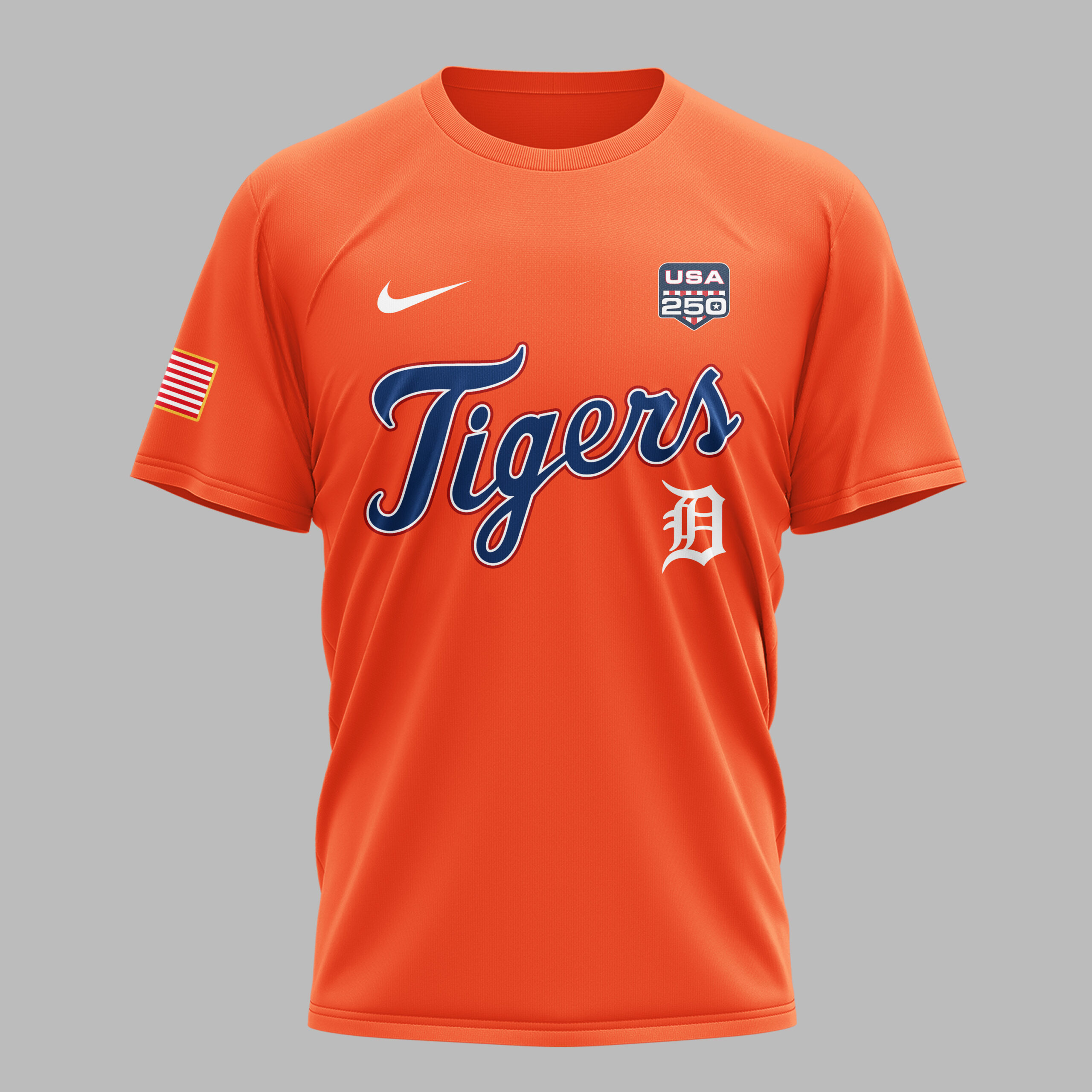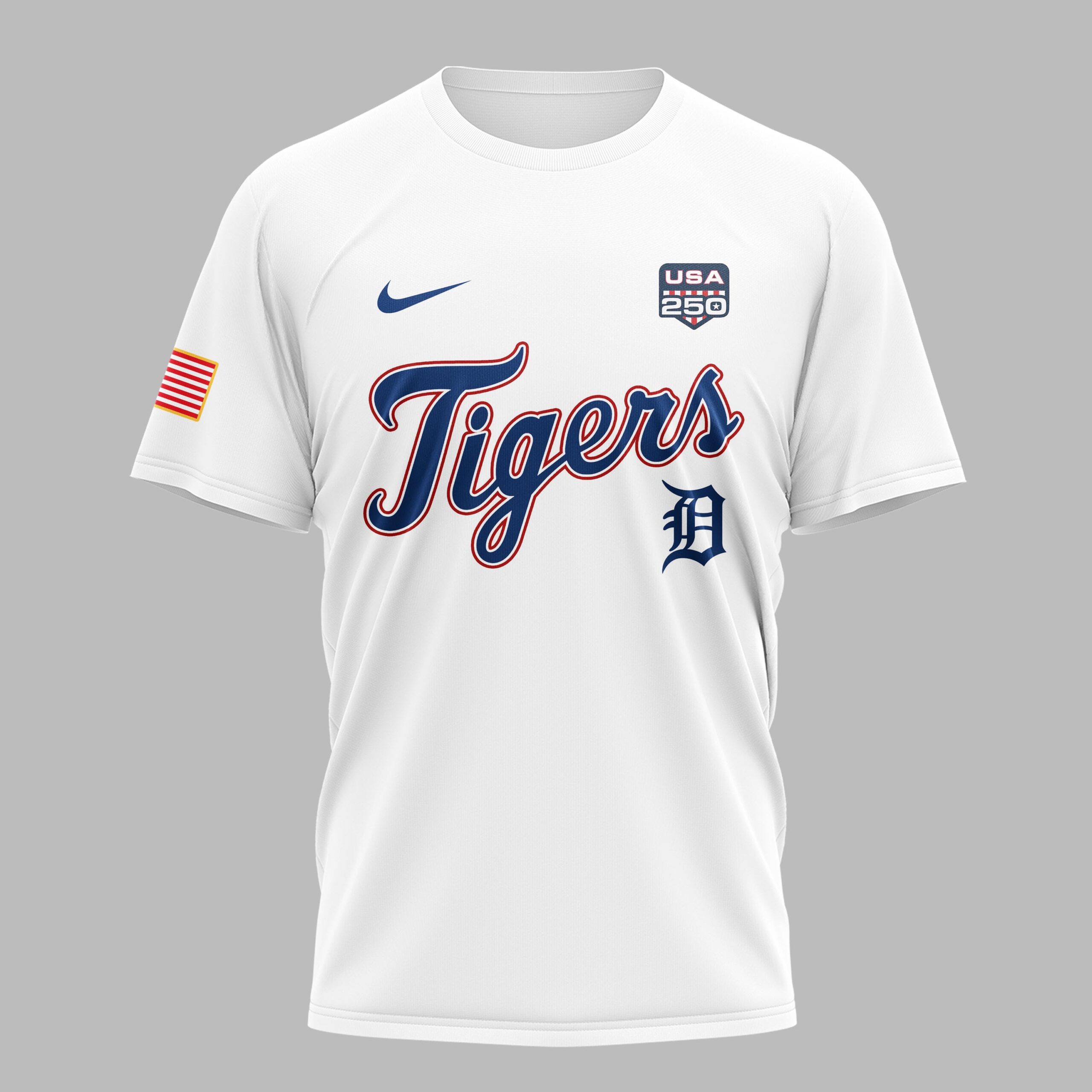 Show your unwavering loyalty to the Motor City and your country with this Detroit Tigers USA 250 Independence T-Shirt. This unique design celebrates two and a half centuries of American freedom while honoring your favorite baseball team. It’s the perfect way to blend your passion for the Tigers with a deep sense of national pride during this historic milestone. The front features the iconic Tigers script in bold red and blue, paired with the classic Old English D and a commemorative USA 250 badge. The back makes a powerful statement with United States of America printed above a large, star-spangled 250th graphic that marks the 1776–2026 anniversary. Patriotic American flag accents on the sleeves complete the detailed look. Wear this standout shirt to Comerica Park for game day, Fourth of July celebrations, or everyday fan wear. It’s an essential piece for any Detroit fan looking to represent their team and country with pride.