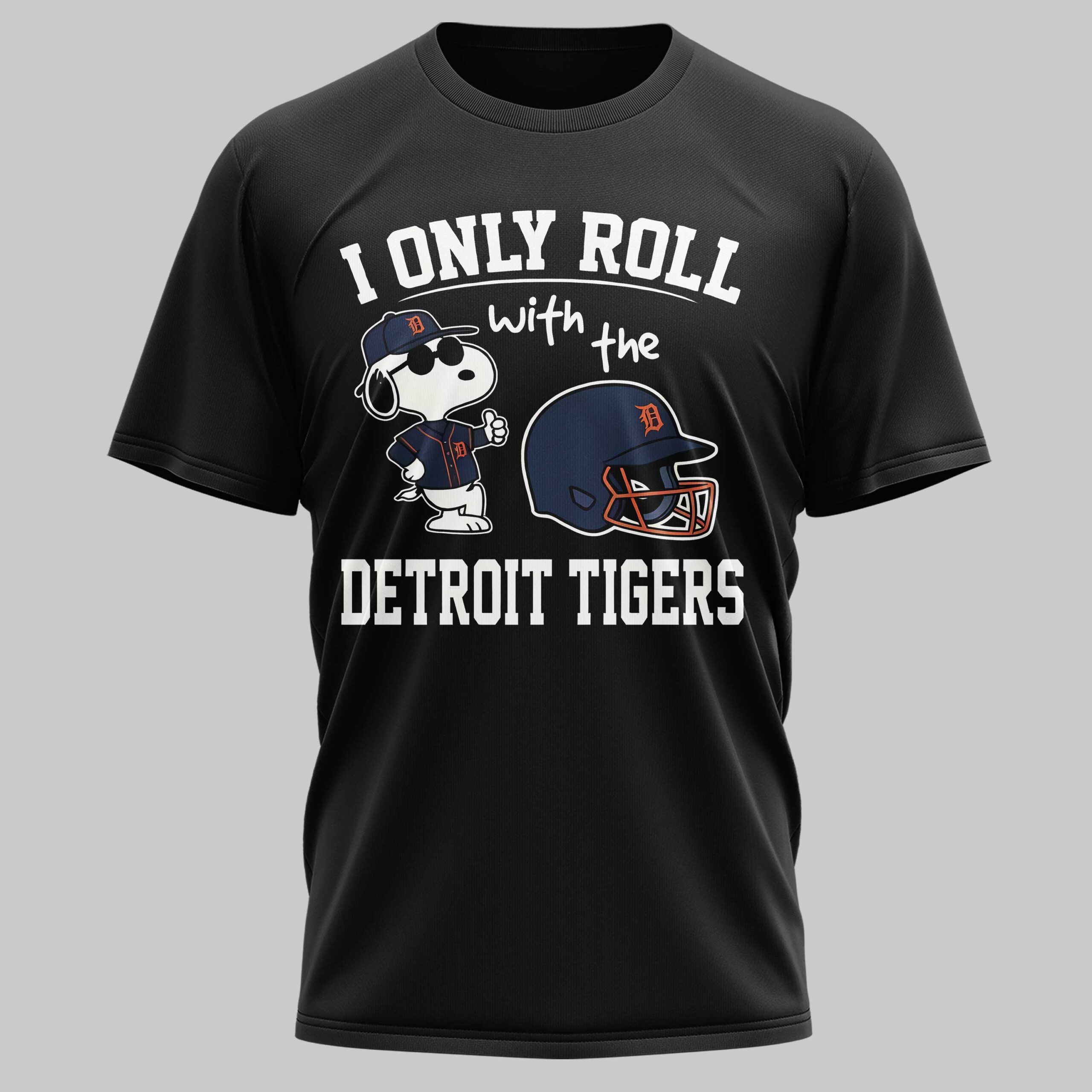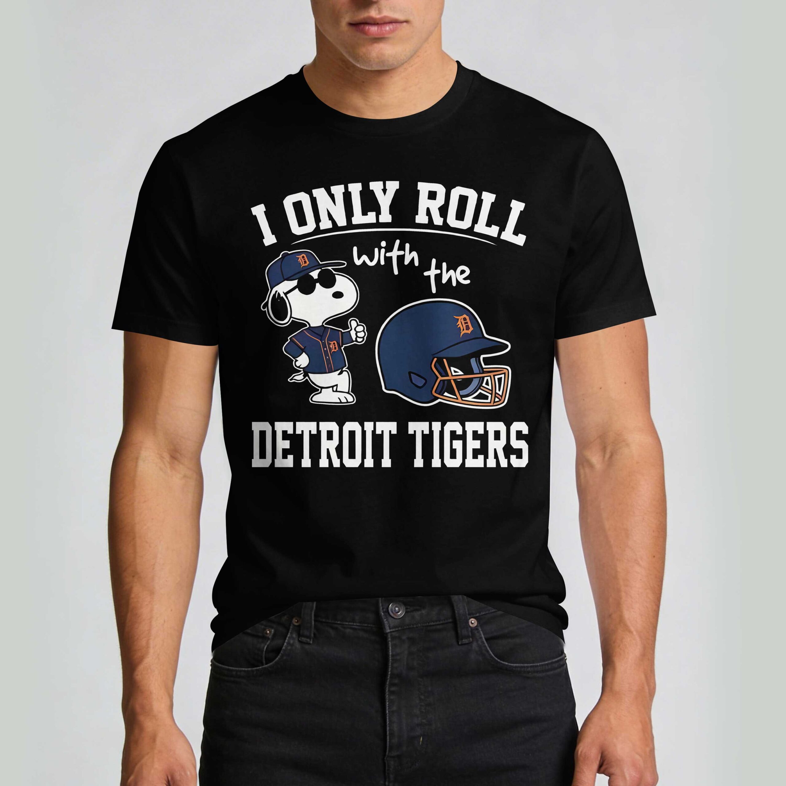 Show your unwavering loyalty to your favorite baseball team with this spirited Detroit Tigers fan tee! Perfect for the dedicated supporter, this shirt boldly declares your allegiance to the Tigers, letting everyone know where your heart truly lies on game day and every day. The front of this black tee features a cool, cartoon dog character, reminiscent of Snoopy, sporting a Detroit Tigers baseball cap and jersey, giving a confident thumbs-up. Beside him sits a classic baseball helmet adorned with the iconic D logo. The playful yet firm message, I ONLY ROLL with the DETROIT TIGERS, is prominently displayed, leaving no doubt about your team pride. The back of the shirt is a sleek, solid black. Whether you’re catching a game at Comerica Park, watching from home, or simply out and about, this shirt is the ultimate way to showcase your devotion. It’s ideal for casual wear, sporting events, or any occasion where you want to celebrate your beloved Detroit Tigers in style and comfort.