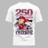 Showcase your Los Angeles Angels pride and celebrate American freedom with this spirited patriotic tee! Perfect for fans who love baseball and a touch of nostalgic charm, this shirt blends your team loyalty with a powerful message of liberty. It’s an ideal way to honor your country and cheer on your favorite team all at once. The front of this vibrant shirt proudly displays ANGELS in bold, stars-and-stripes lettering, accented by festive red and blue fireworks, and the iconic Angels A logo. Turn heads with the back design featuring beloved Peanuts characters Charlie Brown and Snoopy, both decked out in Angels gear and joyfully waving American flags. Above them, 250 YEARS OF FREEDOM stands out, surrounded by more celebratory fireworks. Whether you’re heading to the ballpark, celebrating the Fourth of July, attending a backyard BBQ, or simply want to express your patriotism and team spirit, this shirt is a home run. It’s a fantastic choice for any occasion where you want to feel proud and spirited.