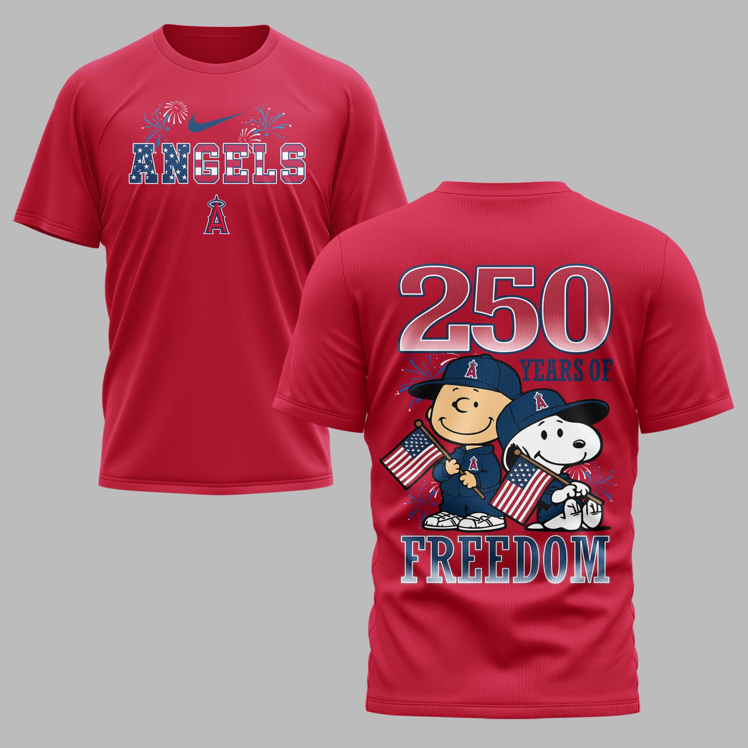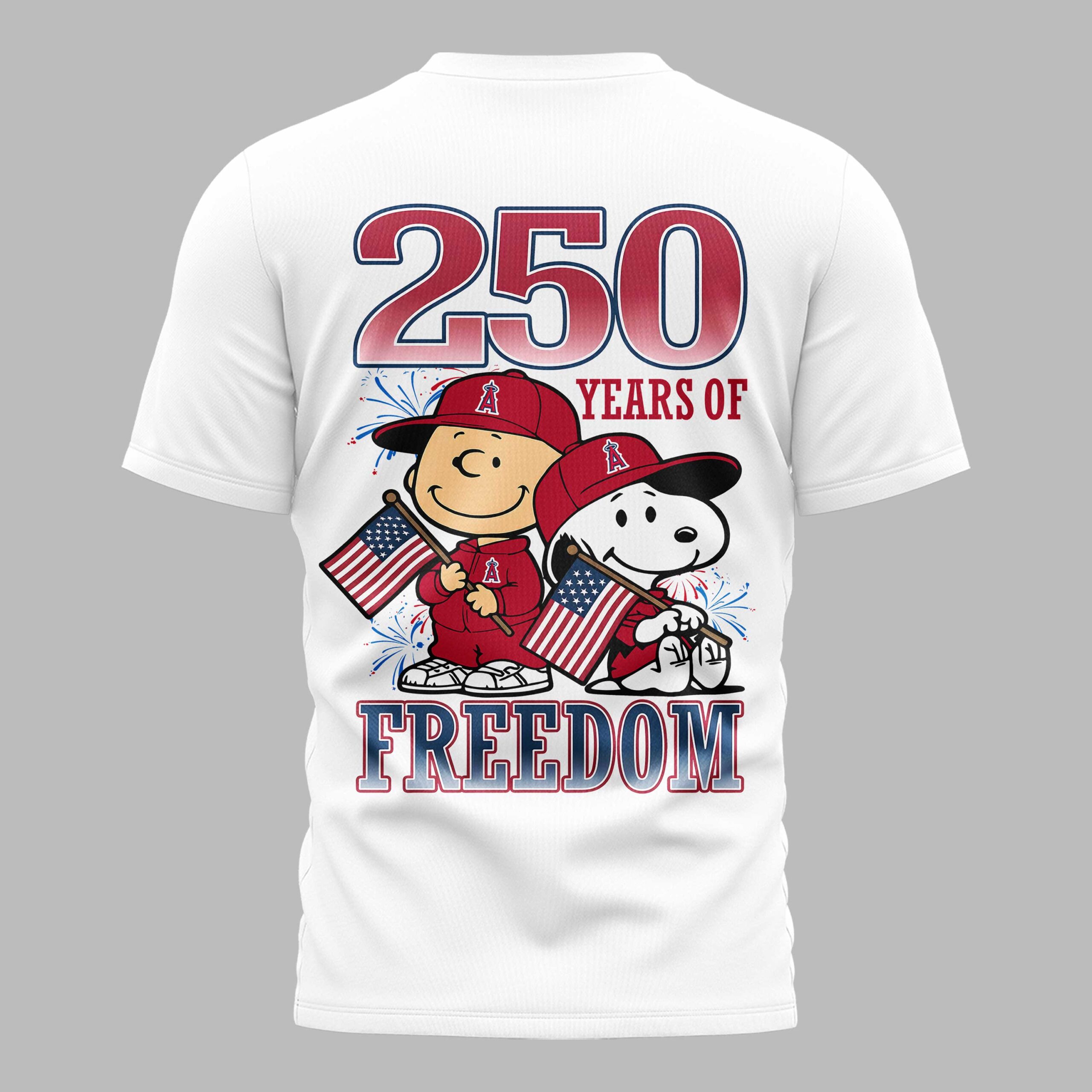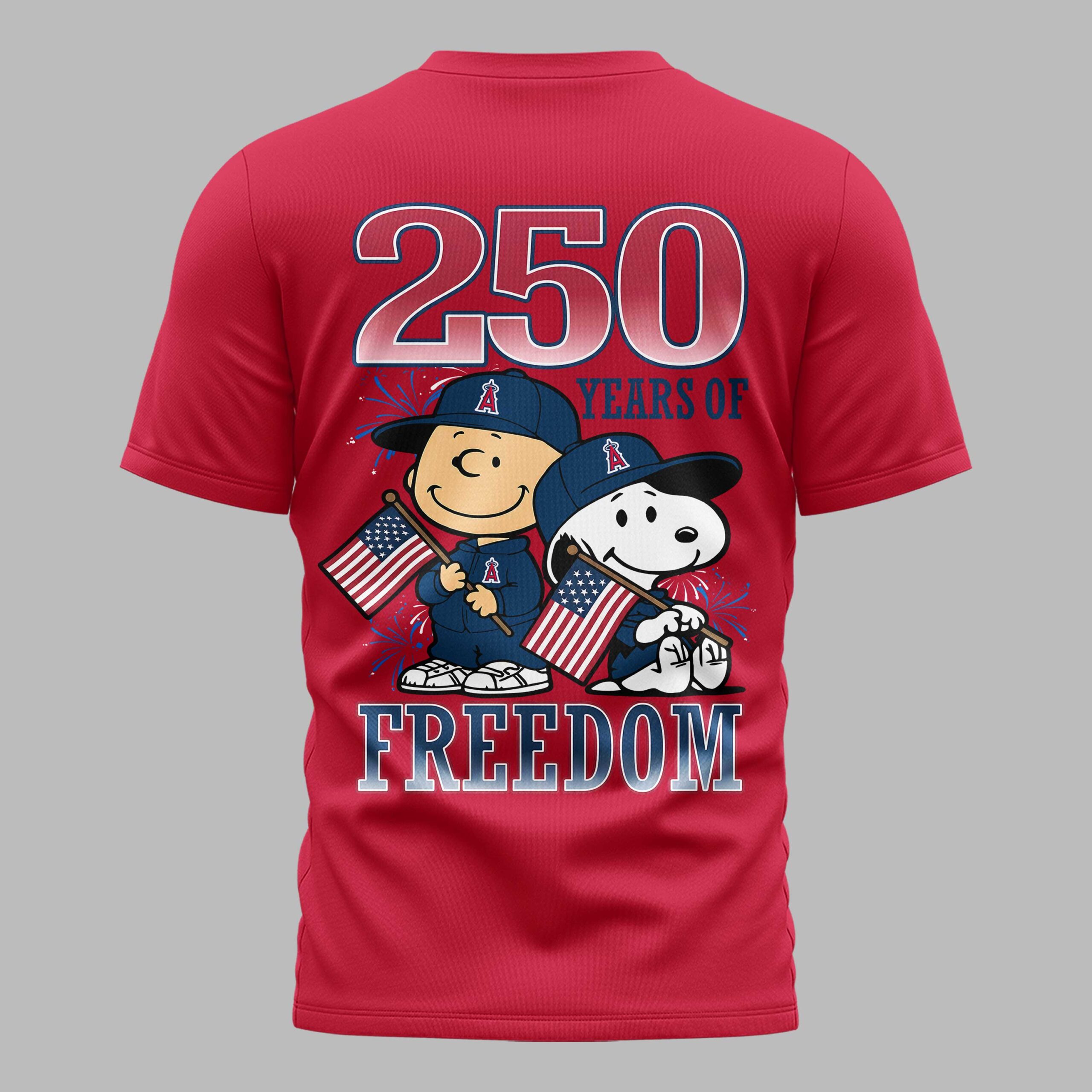 Los Angeles Angels 250th Freedom Anniversary Snoopy & Charlie Friendship Premium T-Shirt PH00003 Los Angeles Angels 250th Freedom Anniversary Snoopy & Charlie Friendship Premium T-Shirt PH00003