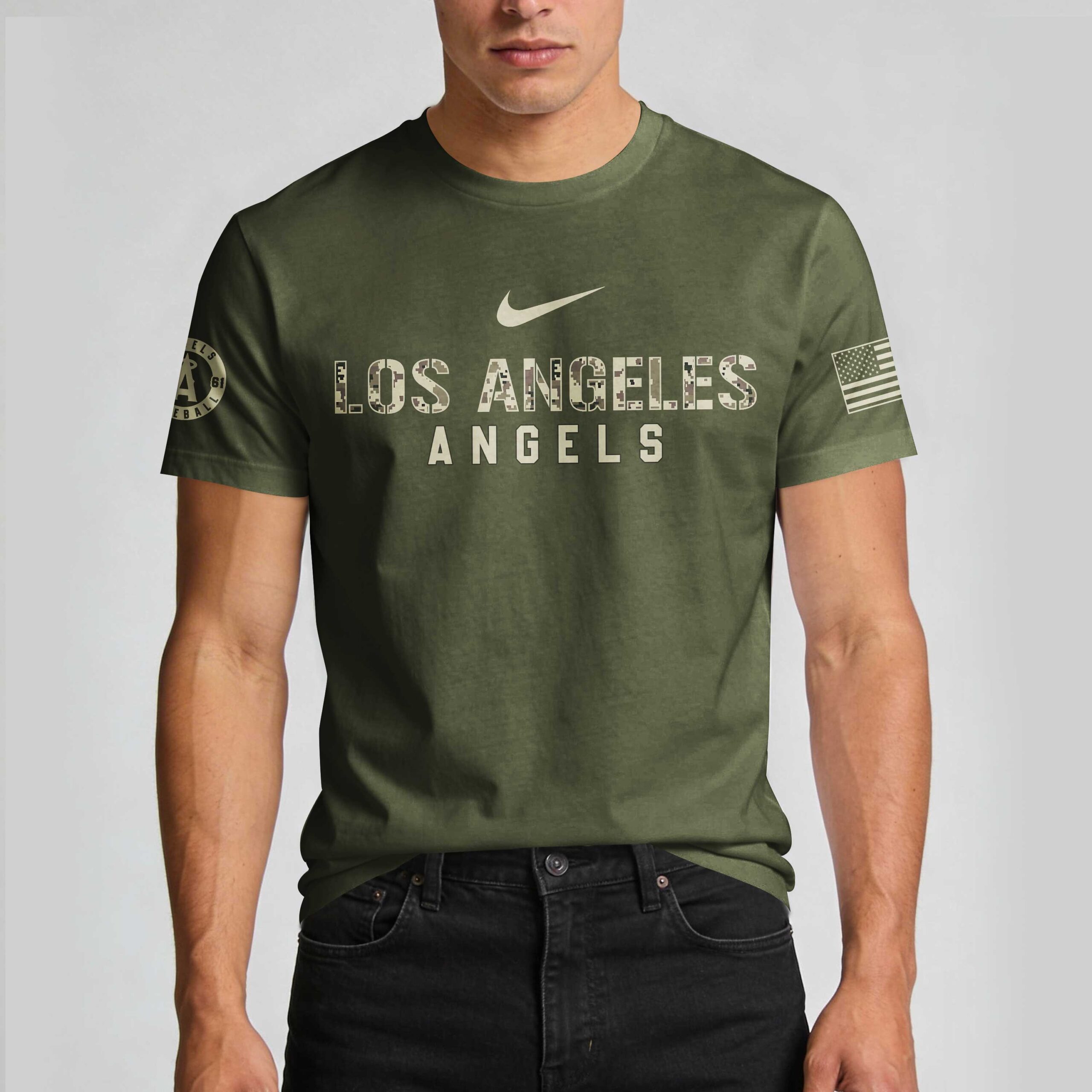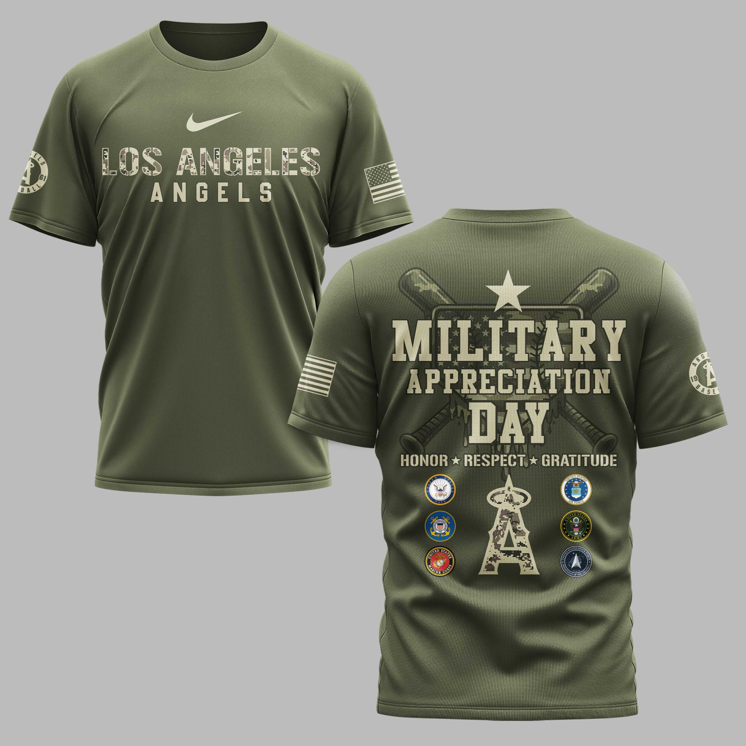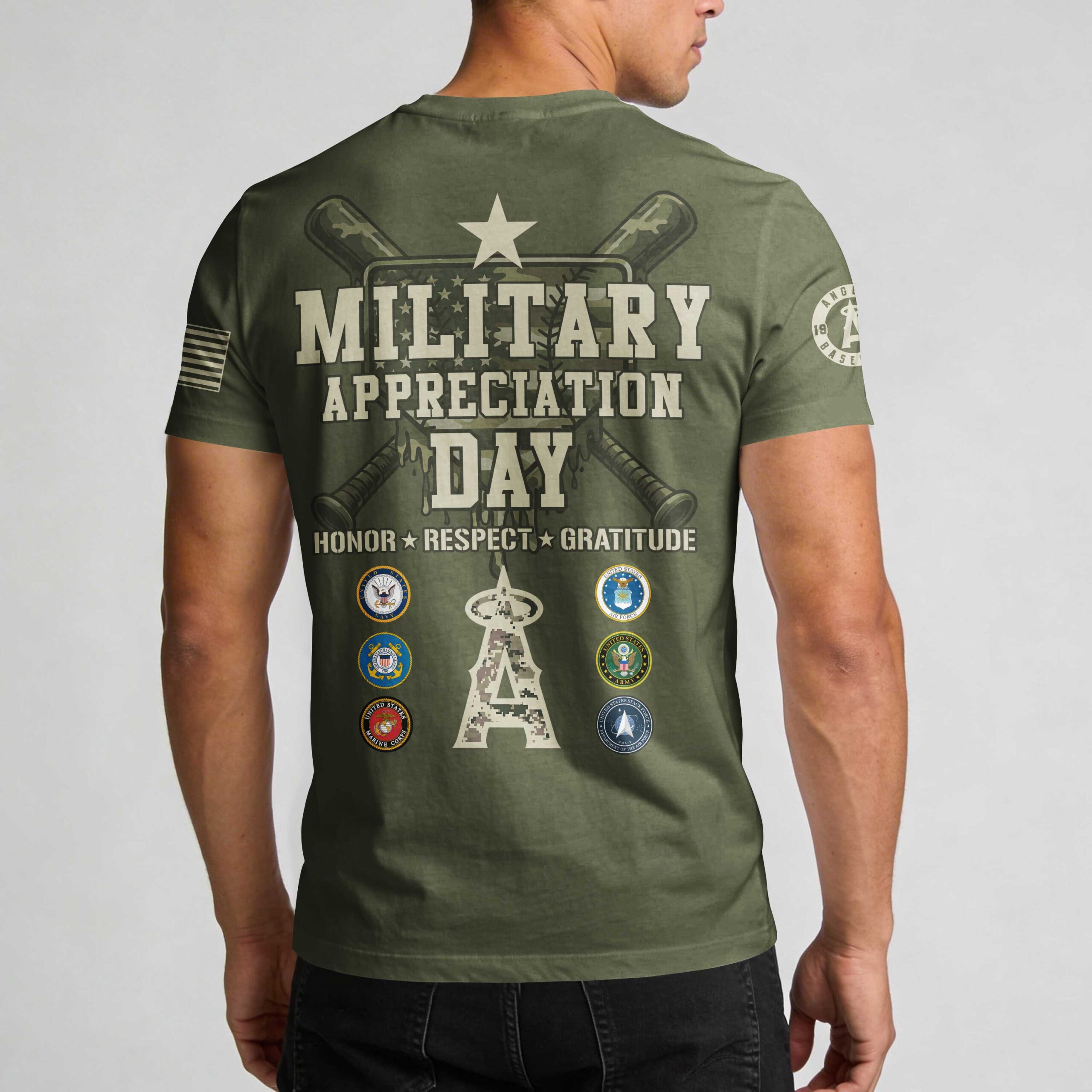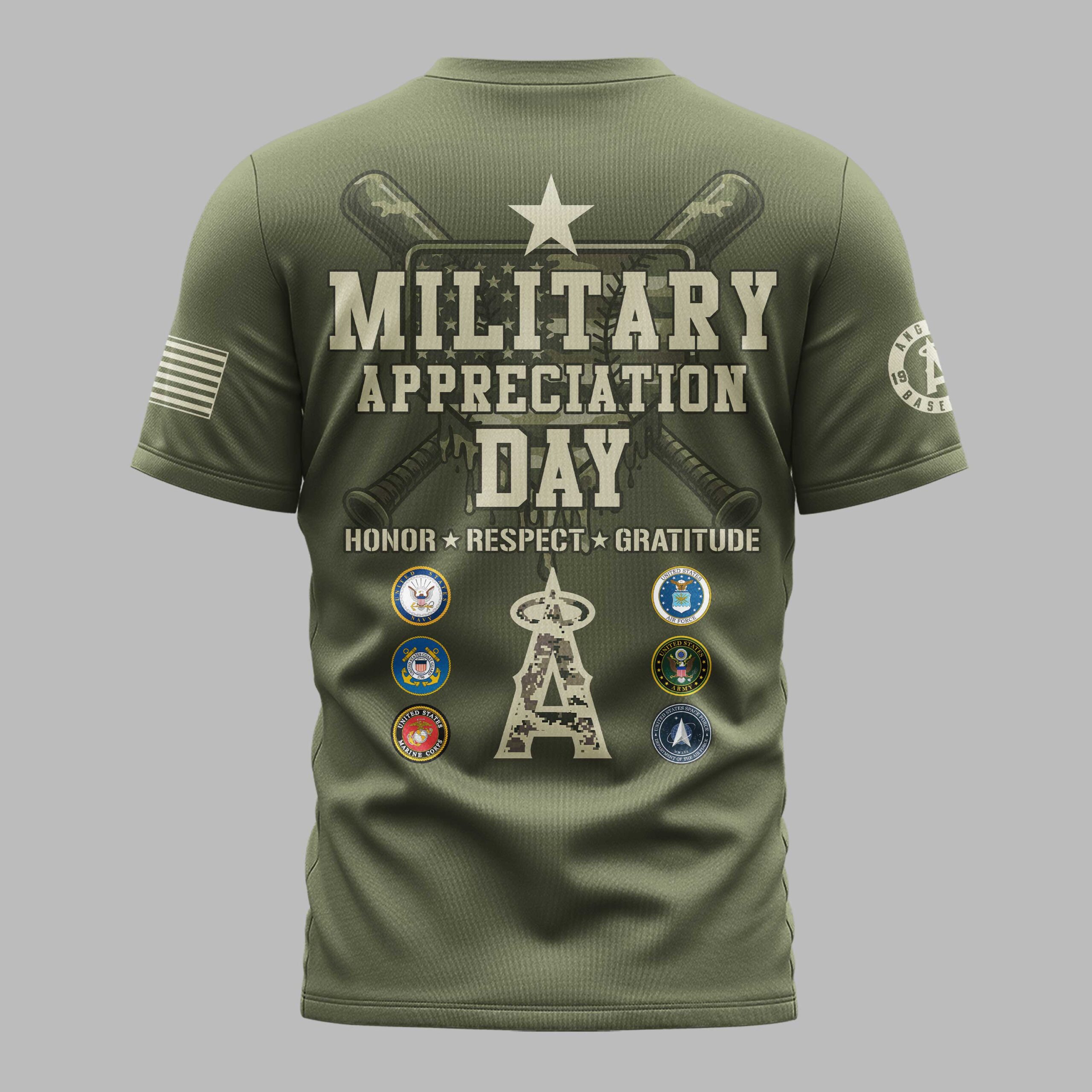 Show your unwavering support for both your team and our nation’s heroes with this Los Angeles Angels Military Appreciation shirt. This design perfectly blends your passion for Halos baseball with a deep sense of national pride, making it a standout addition to any fan’s collection. The front features bold camo-accented lettering for Los Angeles, while the back makes a powerful statement with Military Appreciation Day and Honor Respect Gratitude slogans. Detailed with crossed bats, a large camo Angels logo, and the seals of the U.S. armed forces branches, this shirt honors the brave men and women who serve. Whether you’re heading to the Big A for a game, attending an Independence Day celebration, or just representing your team around town, this shirt is built for dedicated fans. It’s the perfect way to show your Angels spirit during military holidays or at any ballpark outing.