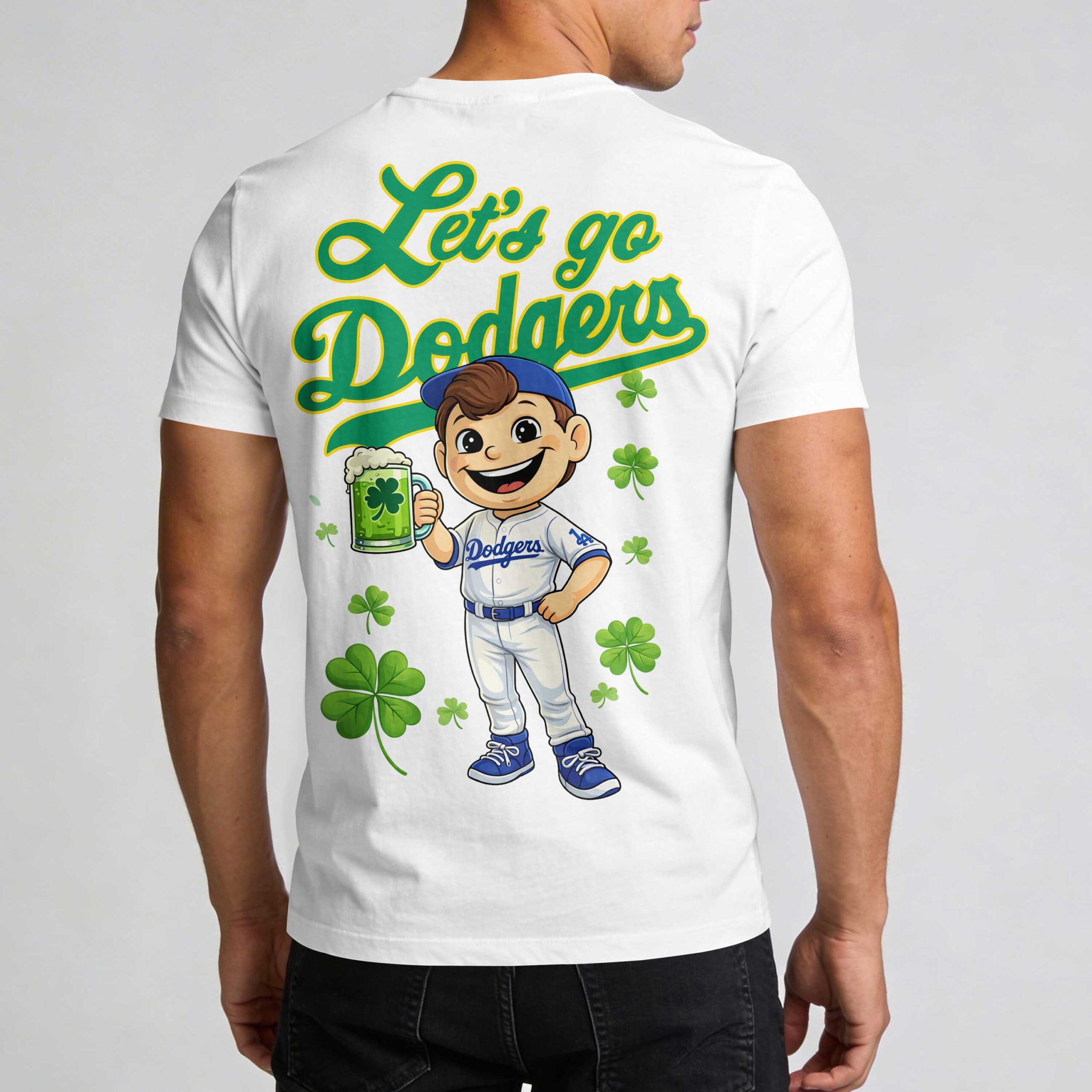 Los Angeles Dodgers USA 250 Independence Baseball Fan T-Shirt Celebrate your team pride with a festive twist! This Los Angeles Dodgers tee is designed for fans who want to combine their unwavering loyalty with a bold celebratory spirit. It’s the perfect way to honor the blue crew, ensuring your passion for the game and the holiday spirit are always on full display. The design features the iconic Dodgers script and LA logo on the front, reimagined in a striking green and yellow colorway. The back showcases a cheerful baseball character holding a frothy mug, surrounded by lucky shamrocks and a Let’s go Dodgers cheer. This playful graphic brings a high-energy, festive vibe to your fan gear collection. Whether you’re at the ballpark or a holiday gathering, this shirt is the ultimate choice for game day. Represent your Los Angeles pride with a unique look that keeps the celebration going from the first pitch to the final out.