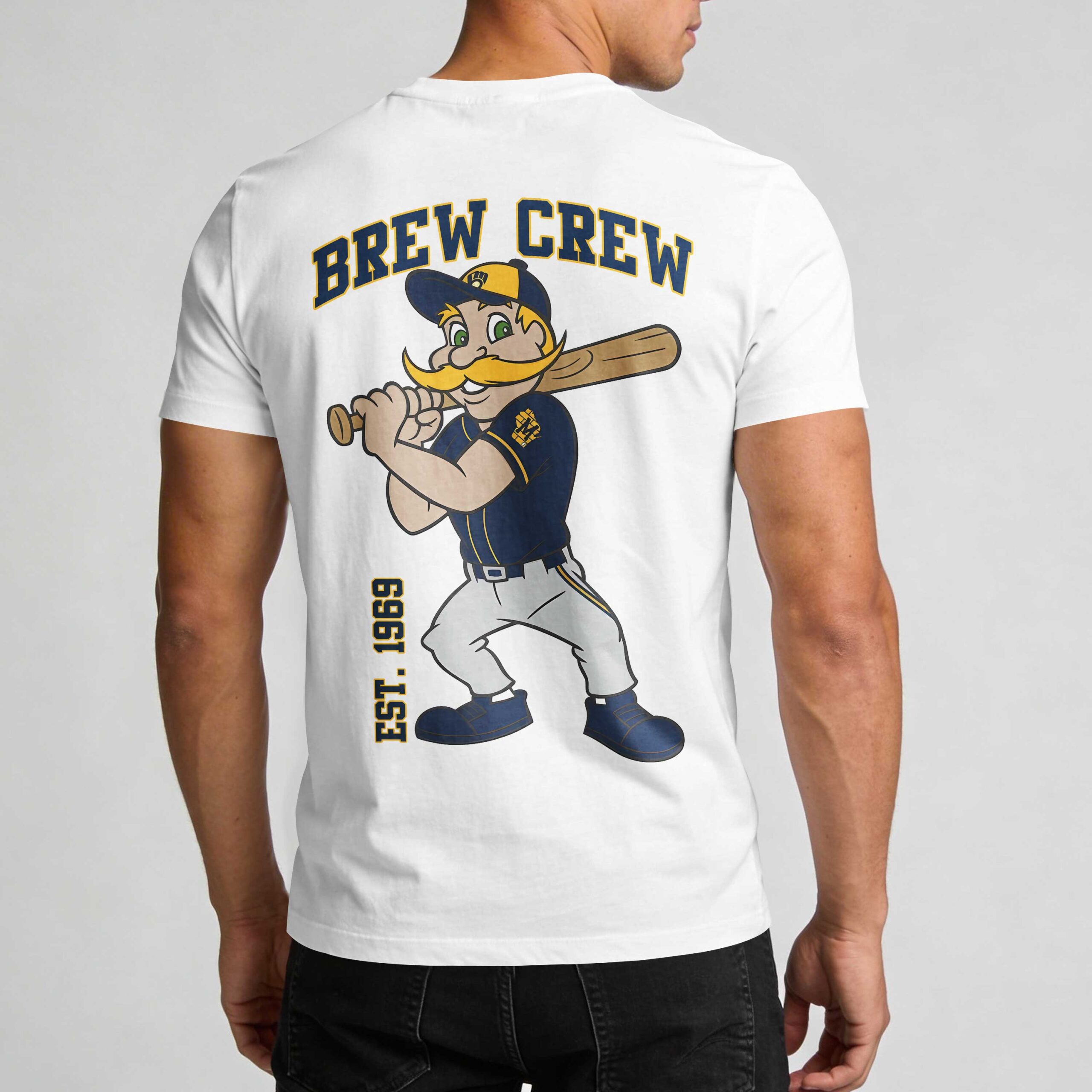 Show off your Milwaukee pride with this vibrant tribute to the Brew Crew. This shirt captures the essence of Wisconsin baseball history while celebrating our nation’s spirit, making it a must-have for any die-hard fan looking to represent their team and country simultaneously. The front features a stunning graphic of the city skyline and bridge over a massive baseball, anchored by the iconic Brewers script and a creative beer-mug bat. On the back, the legendary mascot stands ready at the plate under the Brew Crew banner, alongside the EST. 1969 mark that honors the team’s long-standing heritage in the big leagues. Whether you’re tailgating at the stadium, enjoying an Independence Day barbecue, or just grabbing a drink with friends, this shirt is the perfect choice. It’s a bold way to display your loyalty through every inning and celebration all season long.