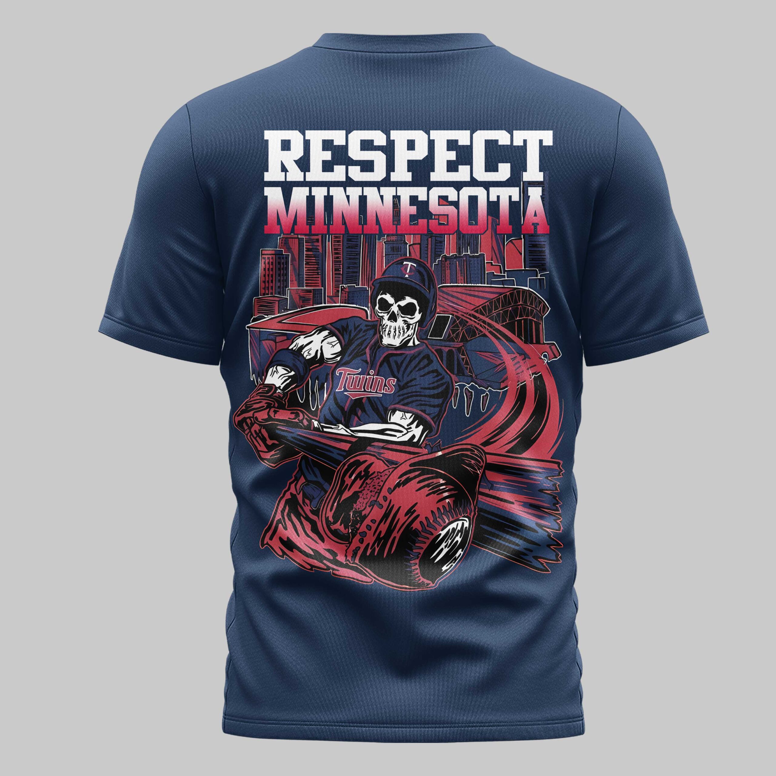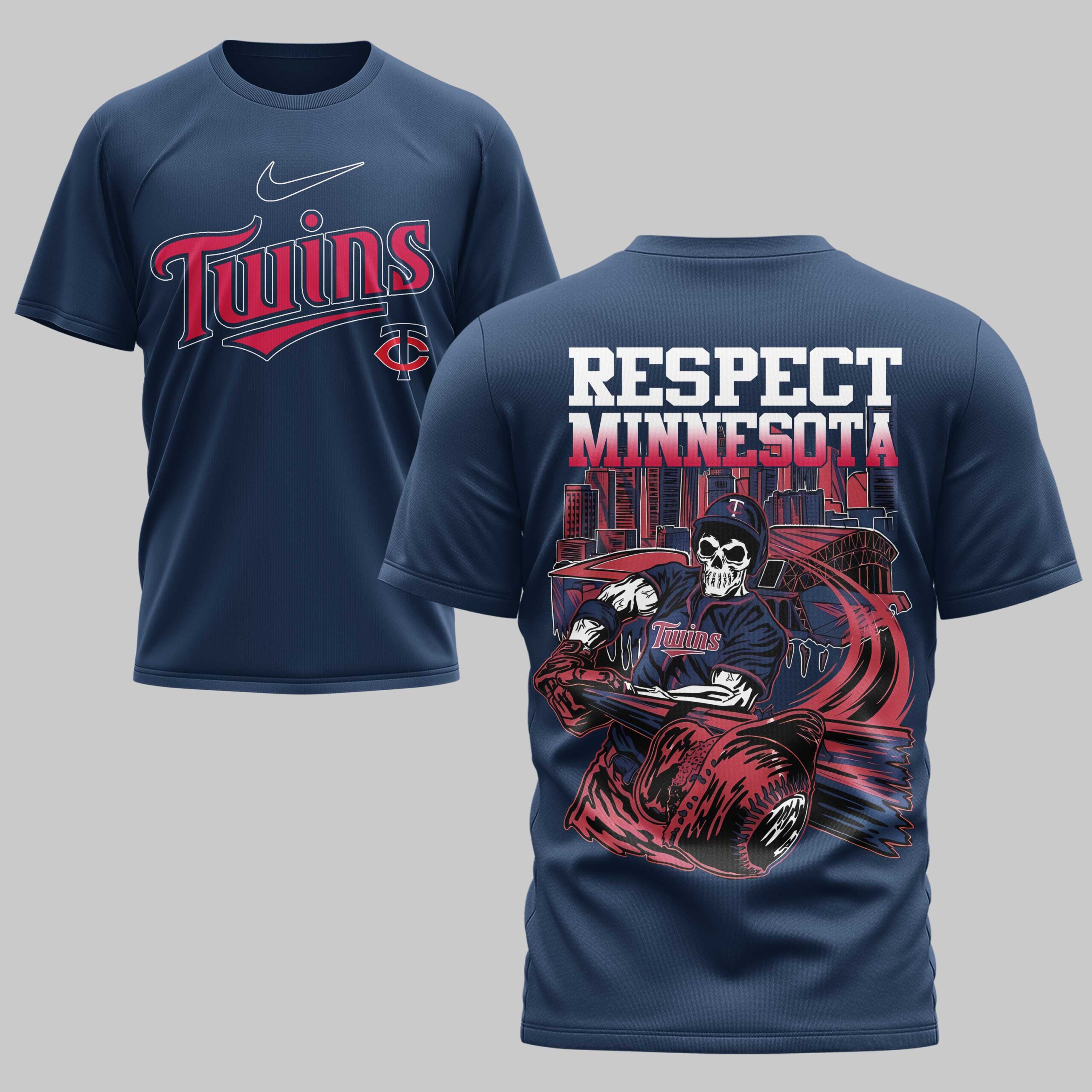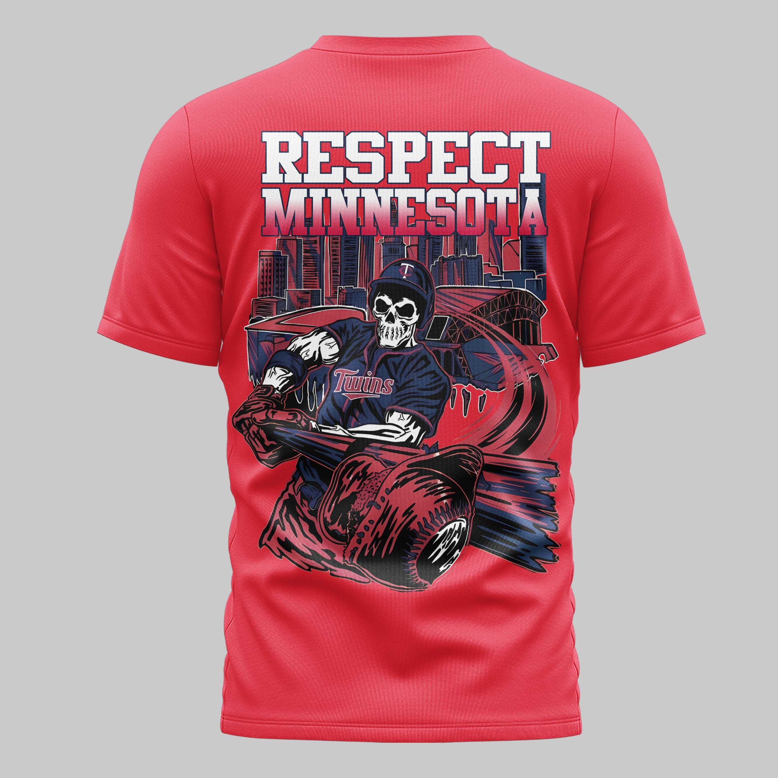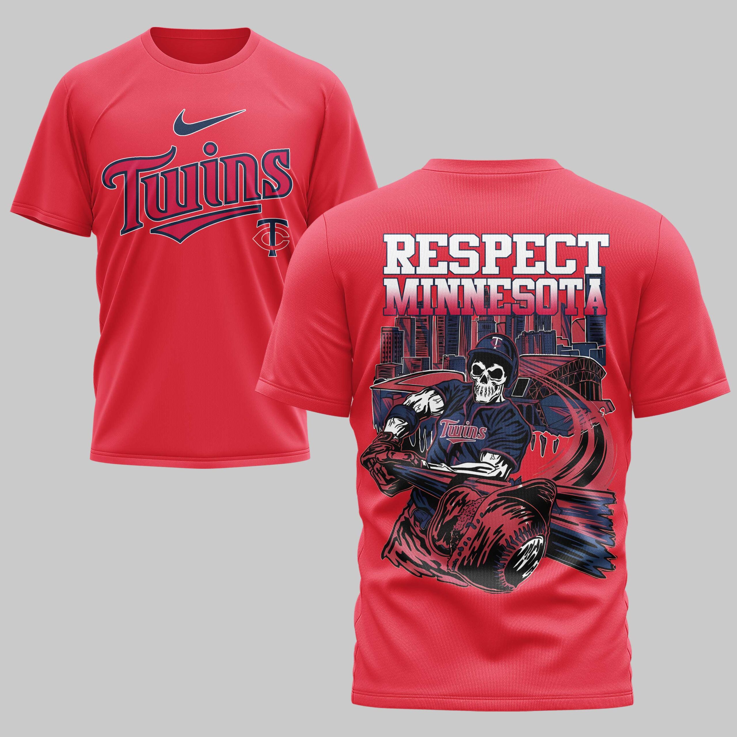 Show your unwavering support for the Minnesota Twins with a tee that embodies true Gameday spirit! This bold design perfectly captures the fierce dedication of Twins fans, blending iconic team pride with an edgy, unforgettable graphic demanding respect for the North Star State. The front proudly displays the classic Twins script logo in vibrant red and white, accompanied by the distinct T C emblem. The back makes a powerful statement with RESPECT MINNESOTA above an imposing grim reaper figure. Decked in a Twins uniform and cap, holding a bat against a dynamic city skyline with a baseball, this design pulses with intense local pride. Perfect for Gameday at Target Field, lively watch parties, or representing your team around town, this shirt is a must-have for any die-hard Twins enthusiast. Wear it loud and proud to showcase your love for Minnesota baseball and its undeniable spirit!