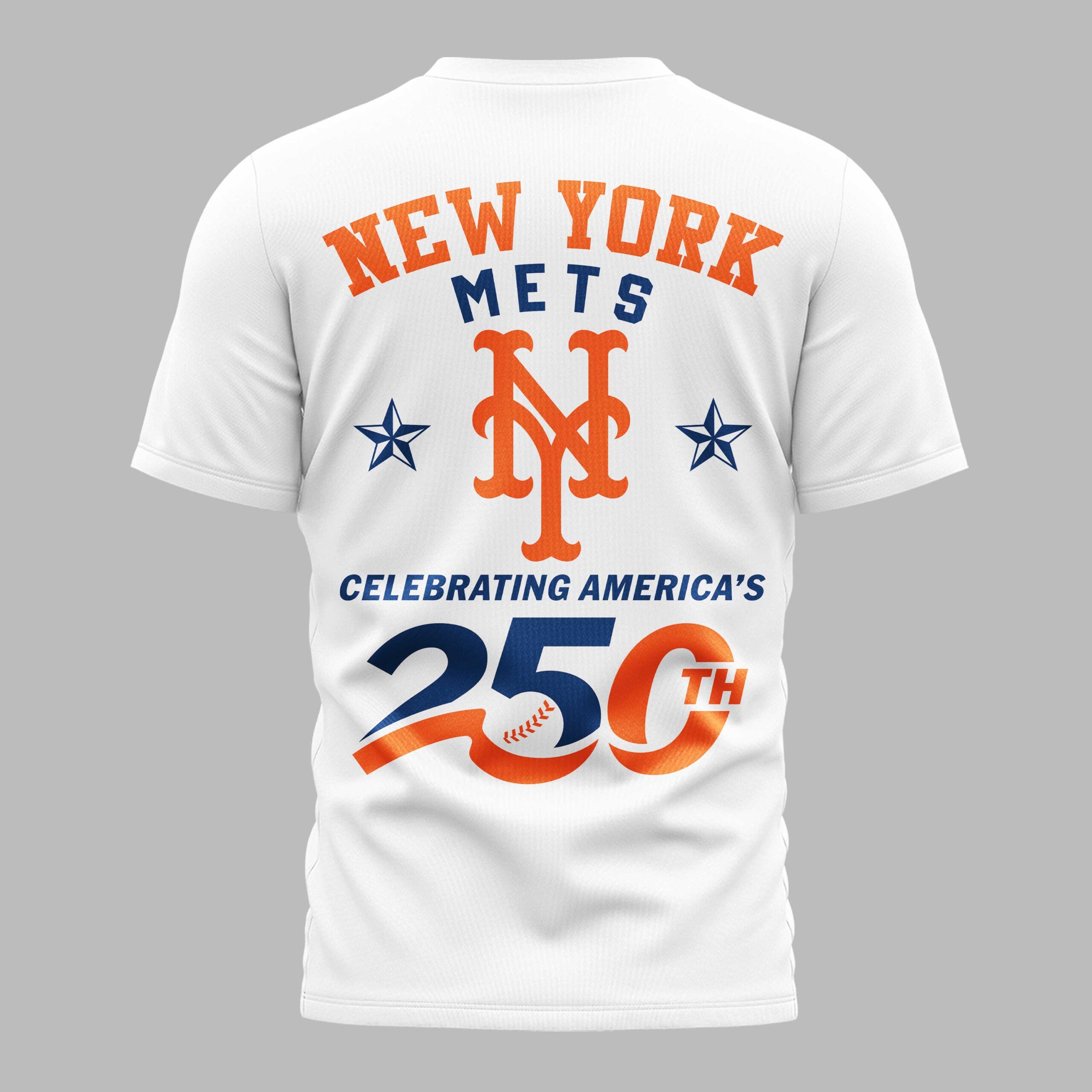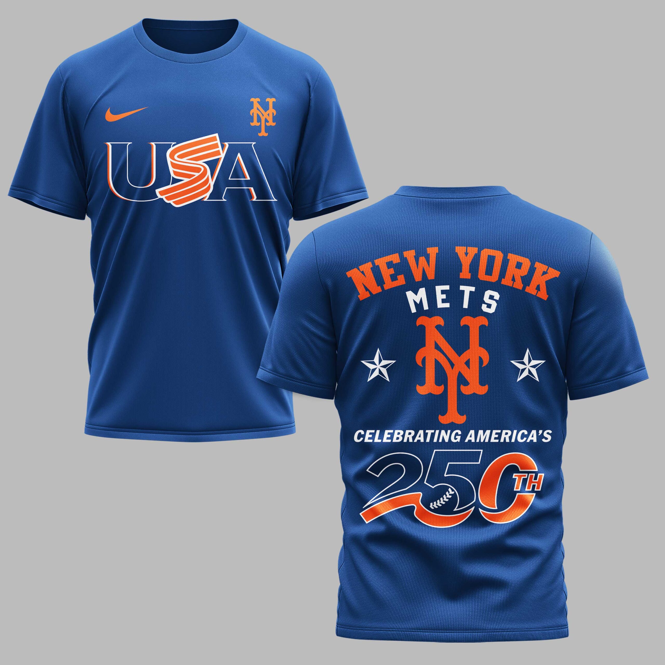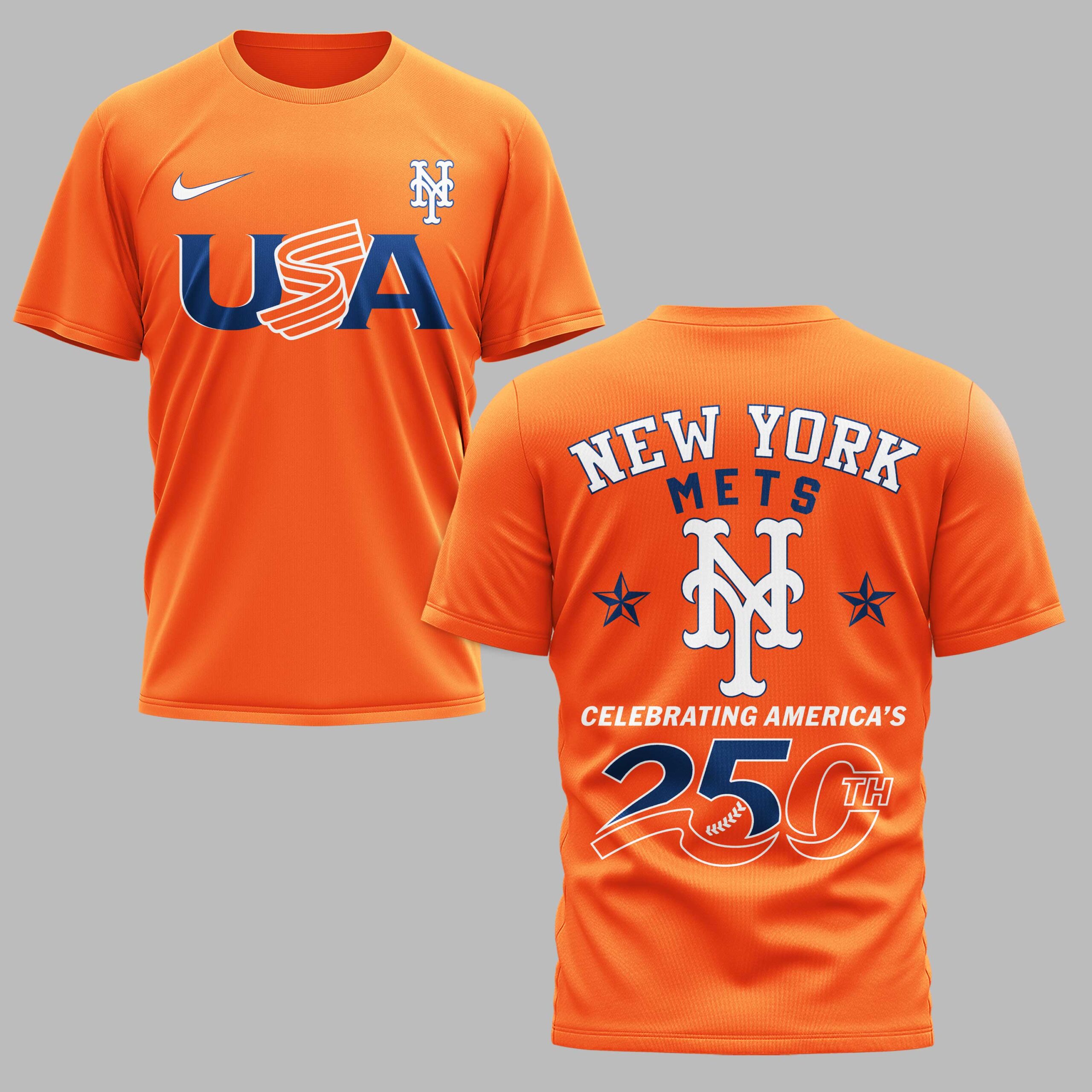 Show your dual pride for the New York Mets and the USA with this special edition fan tee. This shirt celebrates a historic milestone for the country while keeping your loyalty to Queens front and center. It’s a bold way to honor America’s 250th anniversary and your favorite team in one striking look. The front features a large USA graphic paired with the iconic orange NY monogram. The back makes a powerful statement with NEW YORK METS arched over a large team logo and patriotic stars. The Celebrating America’s 250th graphic serves as the centerpiece, perfectly blending team spirit with national pride in the classic orange and blue color scheme. This shirt is perfect for game day at the ballpark, Independence Day celebrations, or everyday fan wear. Whether you’re at a backyard BBQ or cheering from the stands, it’s a must-have for any New York fan. Represent your city and country during this historic celebration.