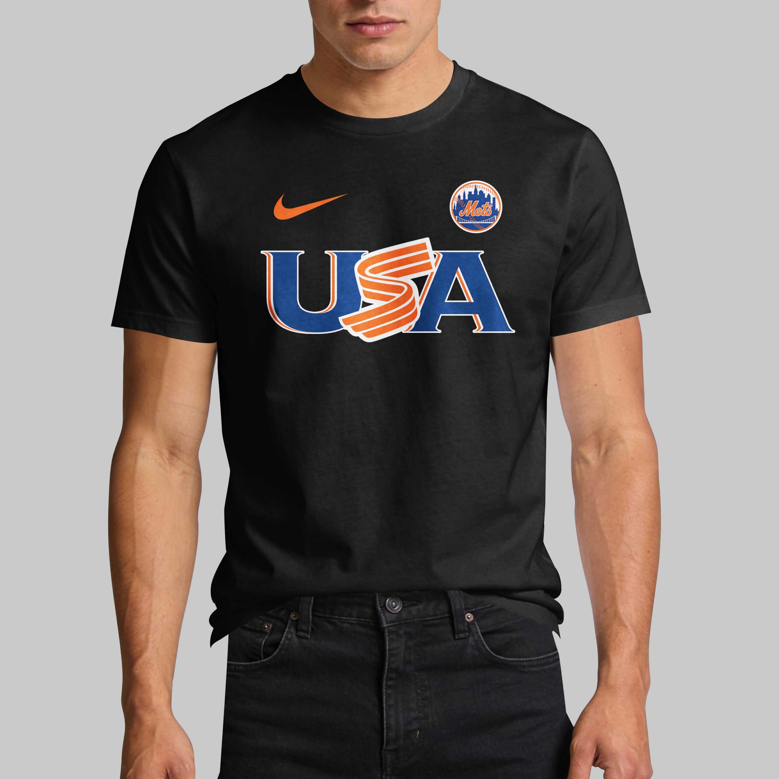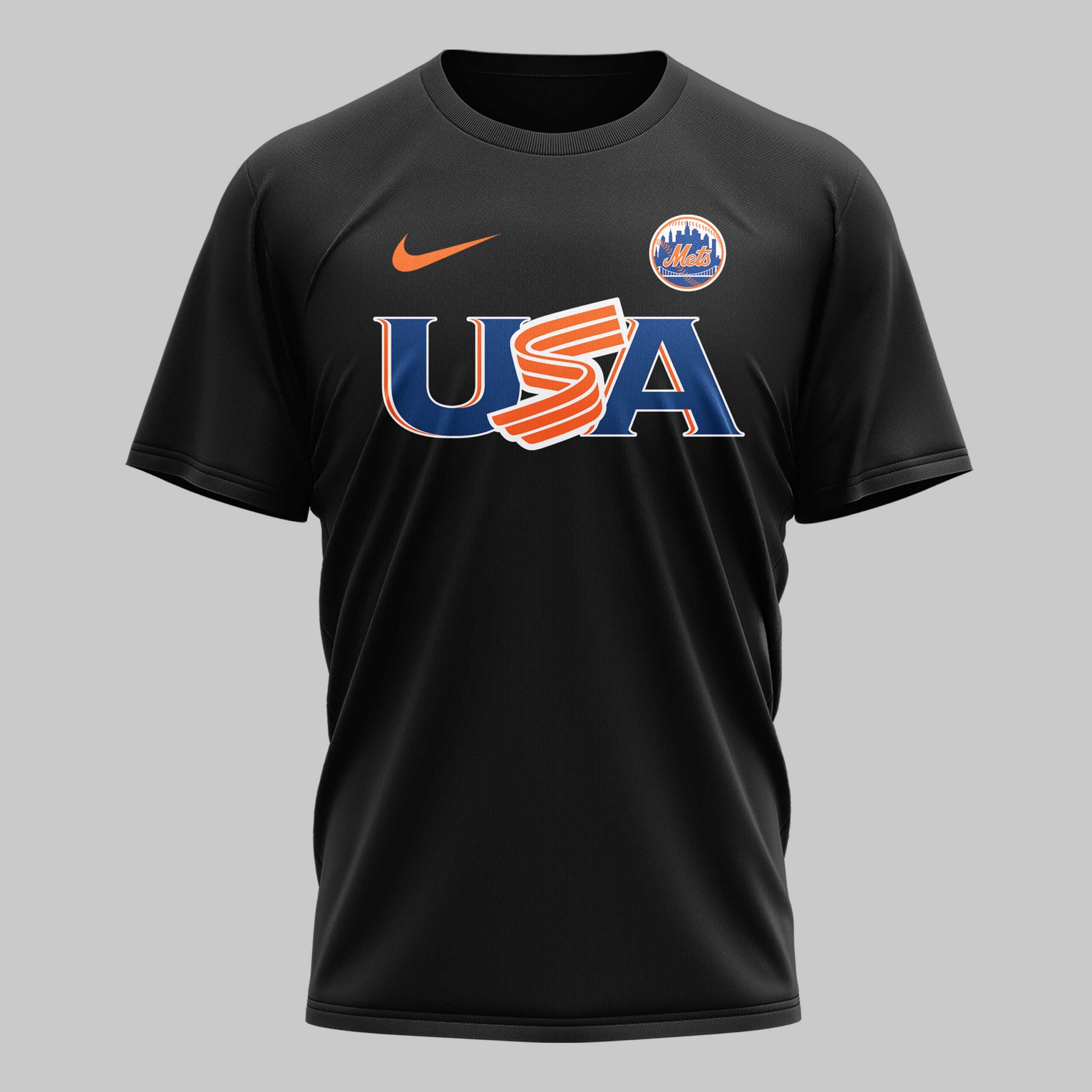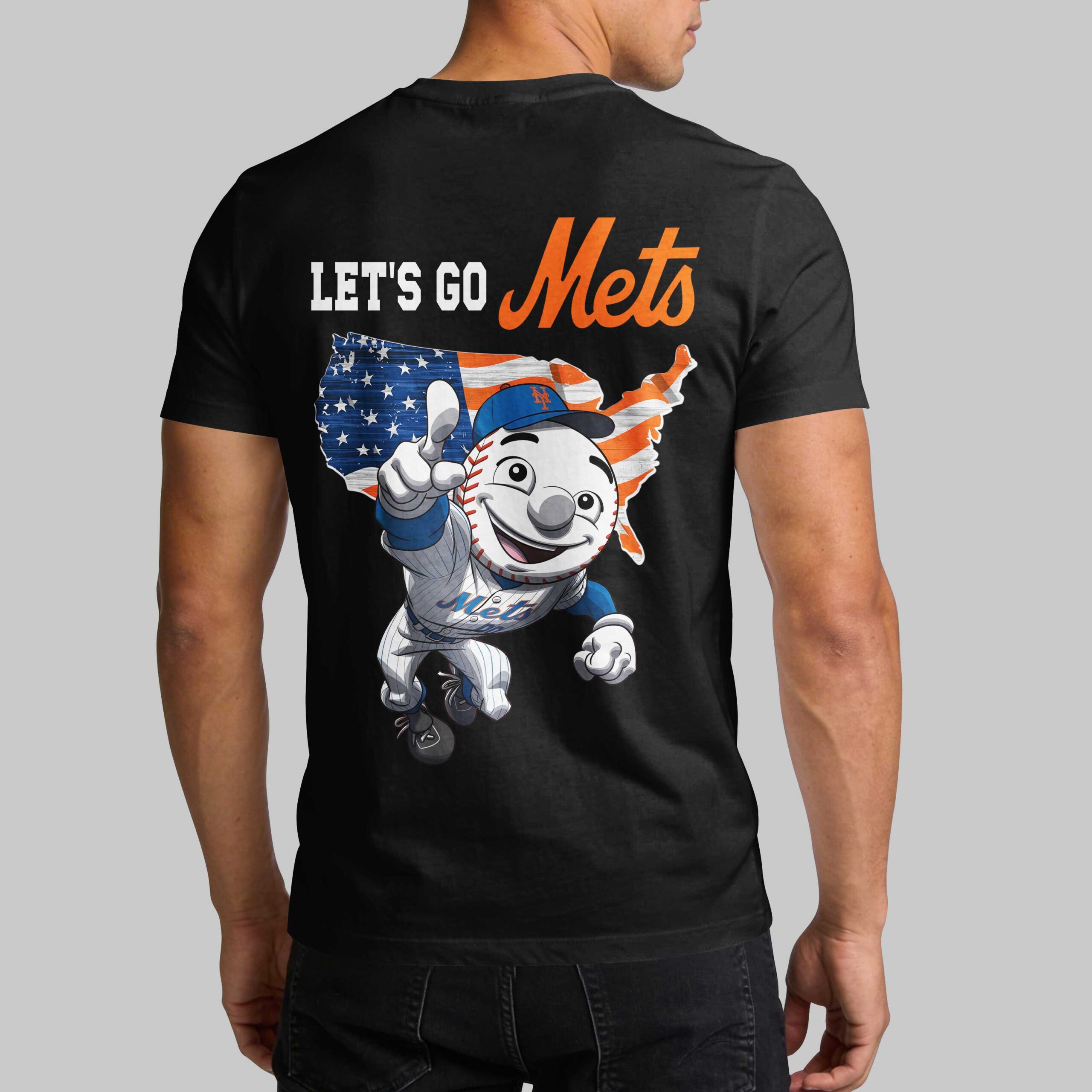 Unleash your double dose of pride with this dynamic New York Mets USA Patriotic Fan T-Shirt! Perfect for the dedicated fan who celebrates both their team and their country, this tee boldly merges your love for baseball with American spirit. The front proudly displays a striking USA graphic, ingeniously incorporating the stars and stripes within its letters, complemented by the iconic Mets logo. Flip it around, and the back truly shines with a spirited LET’S GO Mets cheer alongside the beloved Mr. Met, who leaps into action against a backdrop of a distressed American flag shaped like the United States. It’s a powerful statement of allegiance from every angle. Whether you’re heading to Citi Field, gathering for a Fourth of July barbecue, or simply want to showcase your dual passions, this shirt is your ultimate fan gear. It’s ideal for cheering on the Mets, celebrating national holidays, or bringing that game-day energy to any casual outing.
