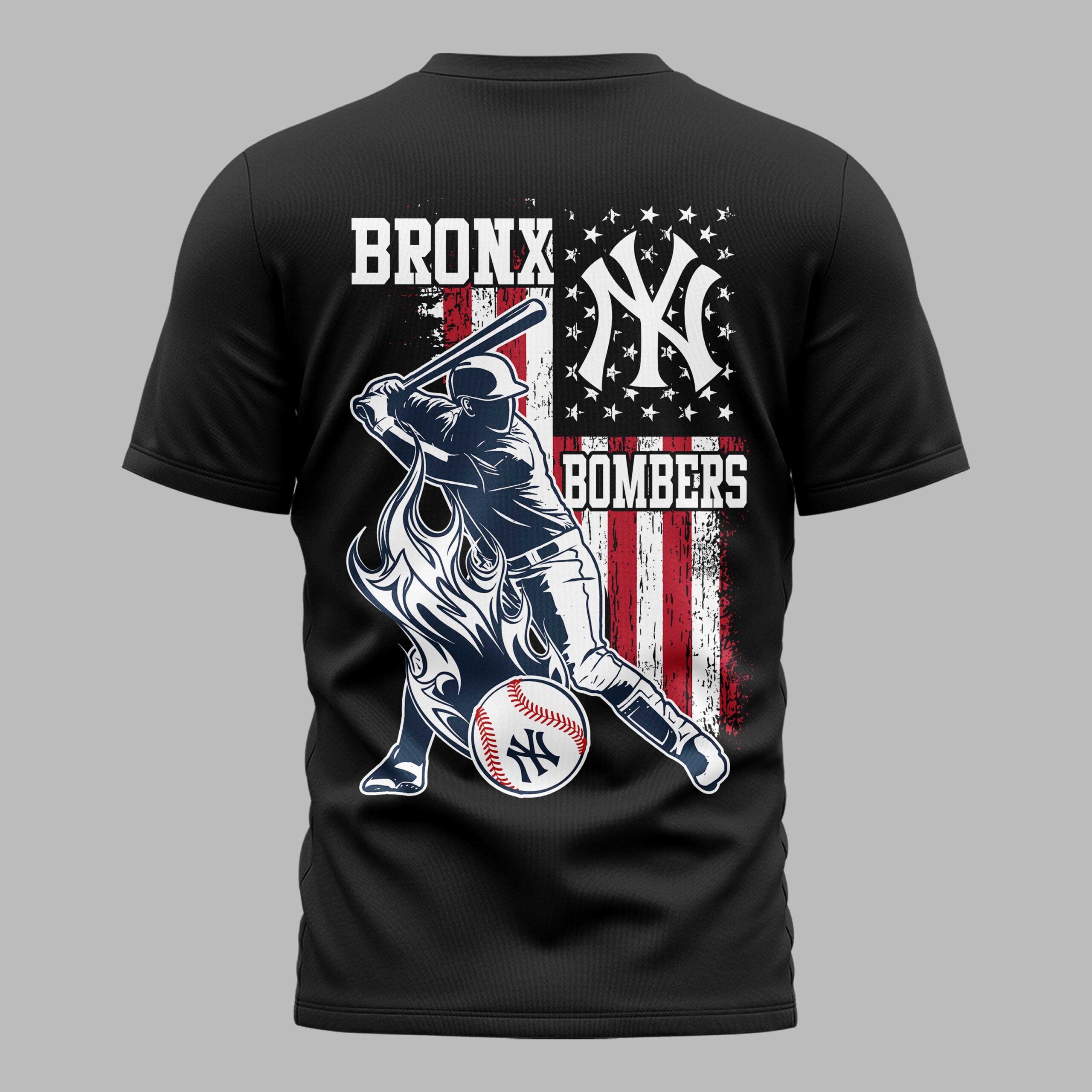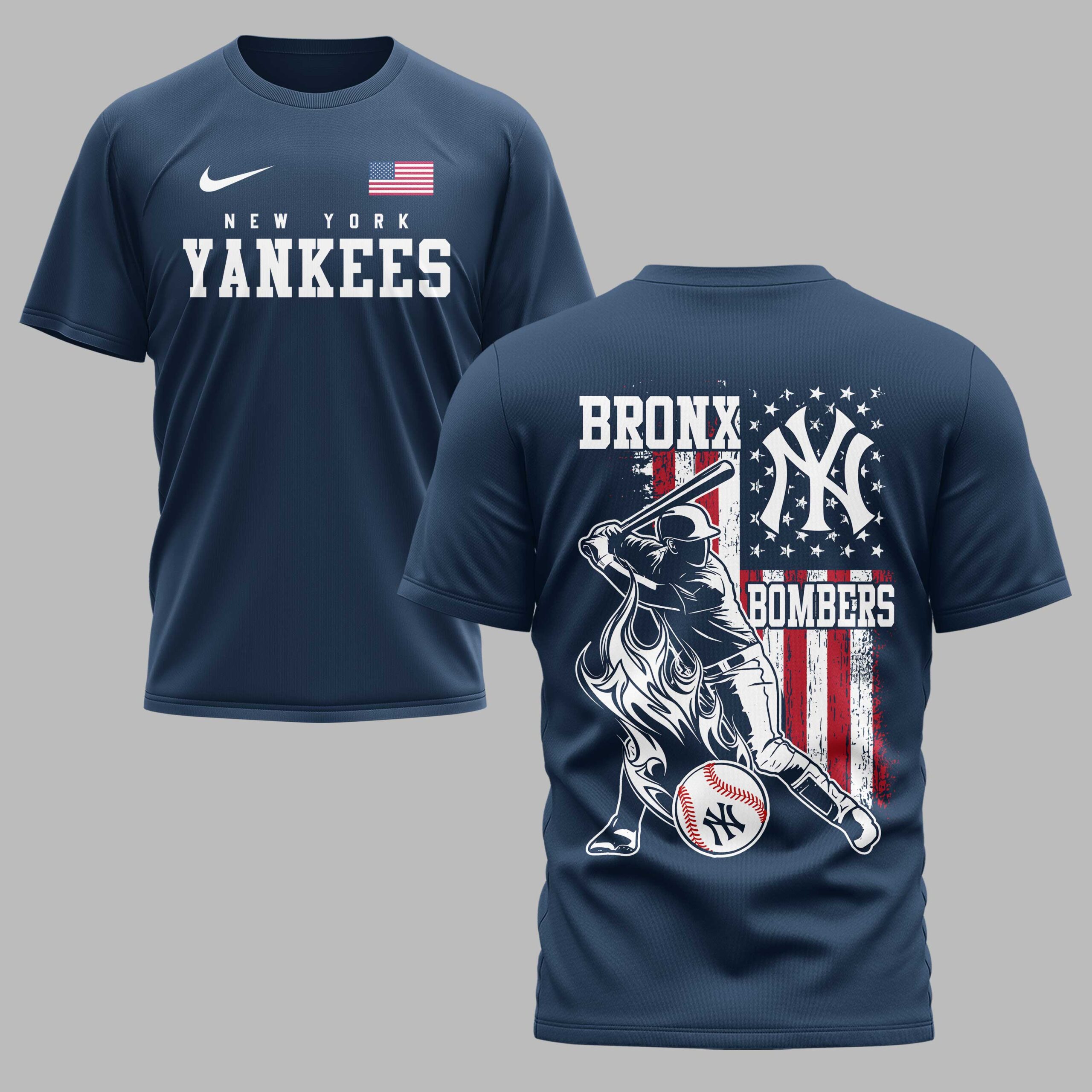 Unleash your ultimate New York Yankees pride with this dynamic and patriotic tee! This shirt perfectly captures the spirit of America’s favorite pastime and your beloved team, making it a must-have for any dedicated fan. Show your unwavering loyalty and celebrate the Yankees’ legacy with a design that speaks volumes. The front of the shirt proudly showcases NEW YORK YANKEES in bold, classic lettering, complete with a subtle American flag accent. The back explodes with a powerful graphic featuring a baseball player in mid-swing, set against a distressed American flag backdrop. Iconic BRONX BOMBERS text, the classic NY logo surrounded by stars, and a baseball with the NY logo complete this striking, spirited design. Ideal for cheering from the stands at Yankee Stadium, celebrating holidays like the Fourth of July, or simply enjoying a casual day out, this shirt lets you represent your team and country with passion. It’s a grand slam for any occasion where you want to display your love for baseball and the New York Yankees!