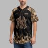 Showcase your dual passion for America’s favorite pastime and the great outdoors with this unique New York Yankees jersey! Perfect for fans who love both game day excitement and the thrill of the hunt, this shirt boldly merges team spirit with rugged wilderness style. The front features the iconic brown NY logo against a sleek black backdrop, accented with a YANKEES patch and dynamic flame-like camouflage details extending from the sleeves. The back makes a powerful statement with a distressed American flag serving as the base for a prominent deer skull and antlers, complete with crossed baseball bats and subtle pine tree silhouettes, all crowned with the NY logo and a tactical American flag patch on the sleeve. Whether you’re heading to a game, enjoying a weekend outdoors, or simply want to display your unique style, this jersey is the ultimate fan gear. It’s perfect for tailgates, hunting trips, casual outings, or simply cheering on the Yankees with an extra edge of outdoor pride.