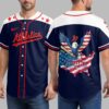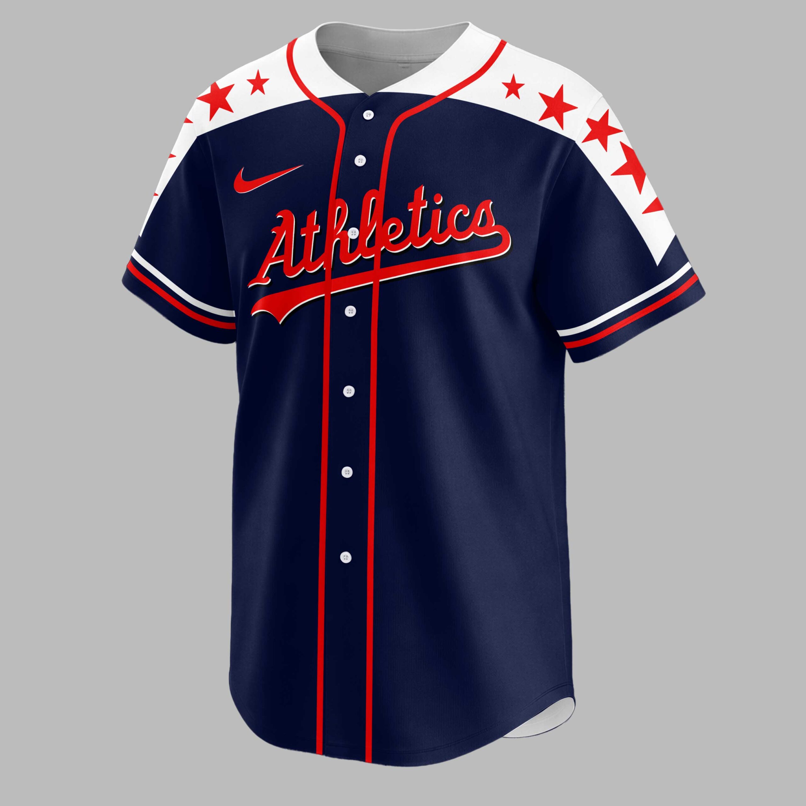 Step up to the plate in style and showcase your unwavering team spirit with this captivating Athletics patriotic baseball jersey. This shirt is a grand slam for fans who want to combine their love for the game with a powerful display of American pride and A’s loyalty. The front of the jersey features the bold Athletics name in a vibrant red script, complemented by a Nike swoosh and spirited red stars marching across the shoulders. The back delivers an undeniable patriotic statement with a majestic bald eagle, wings outstretched in a striking American flag design, clutching a baseball bat. Perched atop a distressed U.S. map emblazoned with ATHLETICS COUNTRY and the iconic A’s logo, this design truly captures the essence of American baseball. Whether you’re cheering from the stands, celebrating national holidays, or simply enjoying a sunny day, this jersey is perfect for any occasion that calls for a blend of sports enthusiasm and patriotic flair. It’s more than just a shirt; it’s a declaration of your devotion.