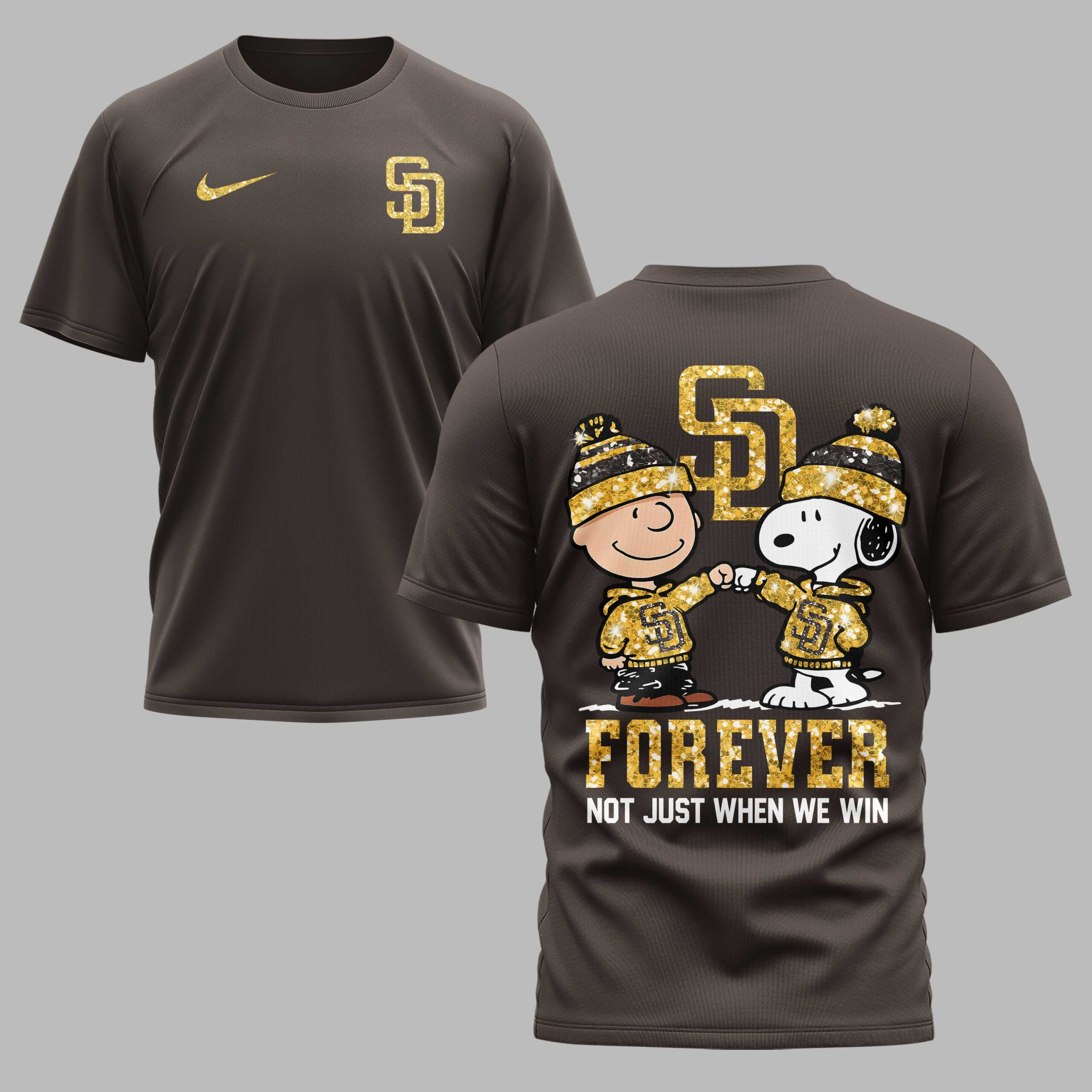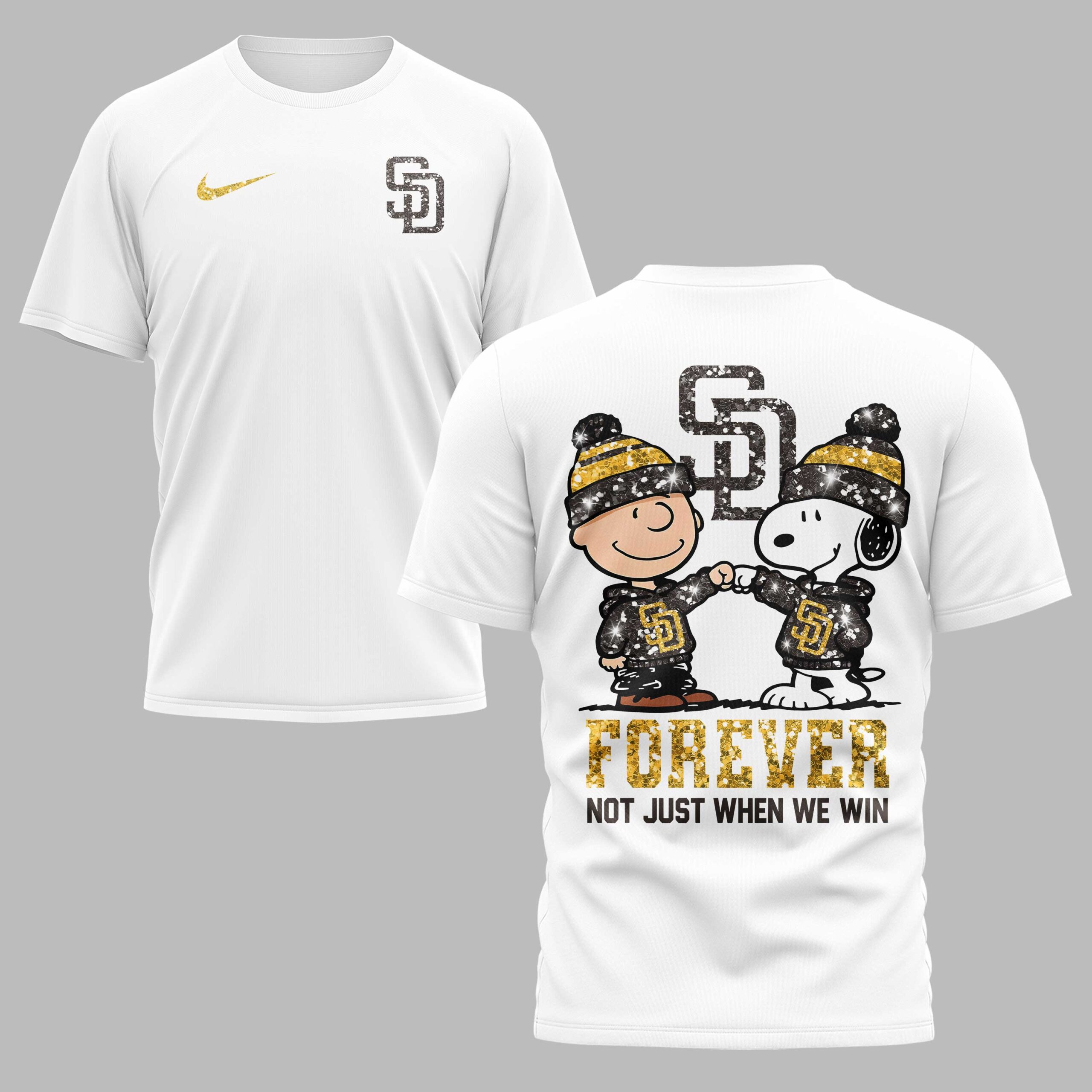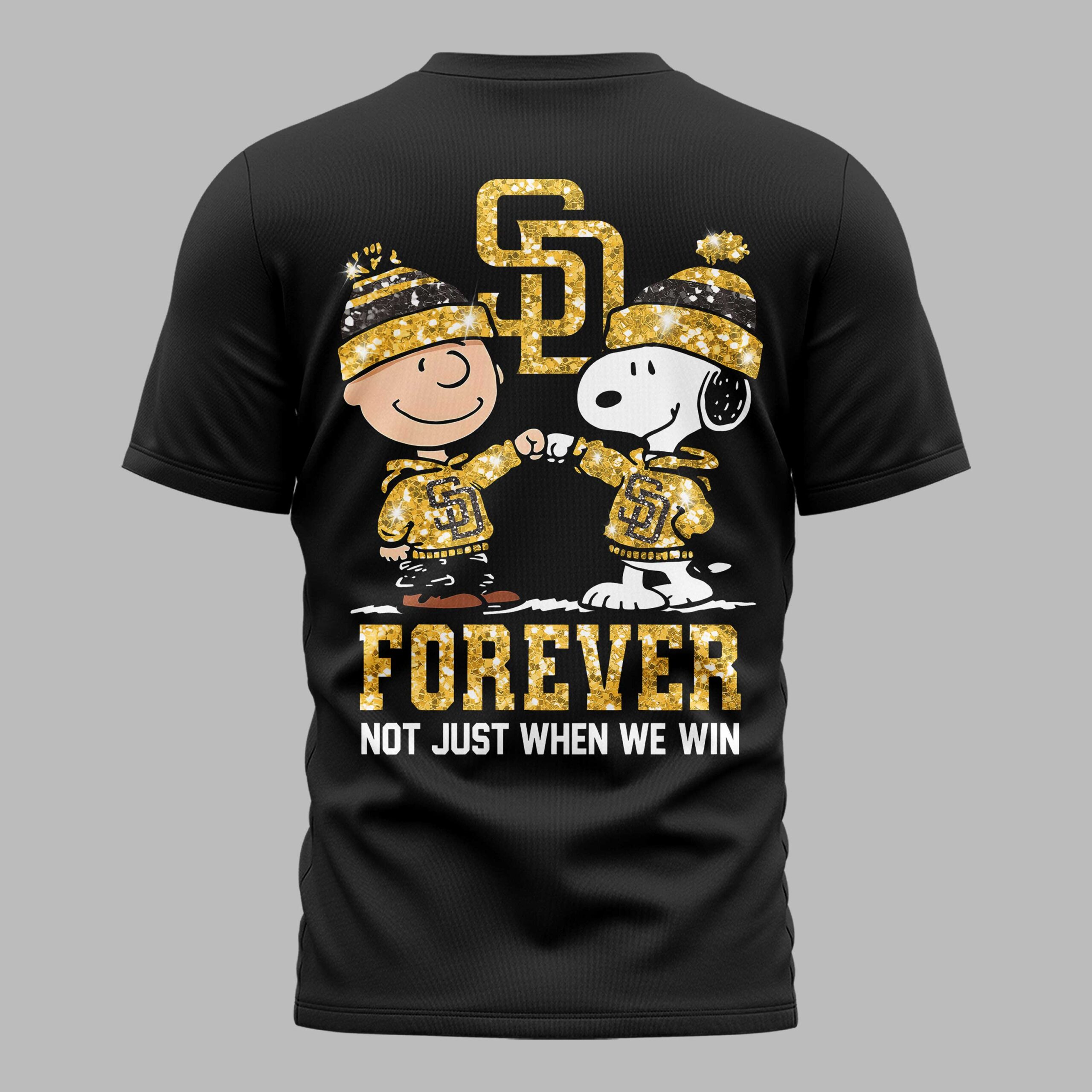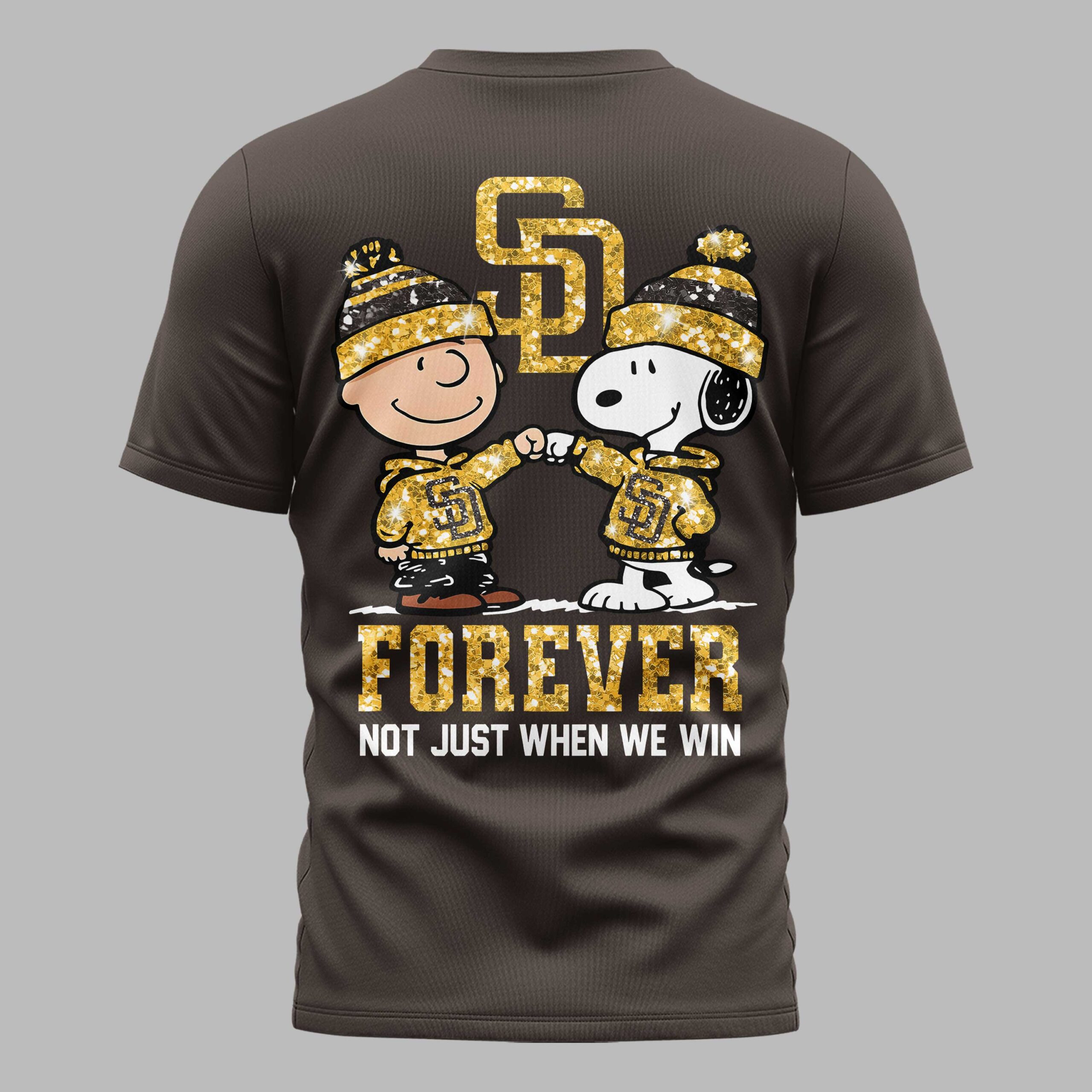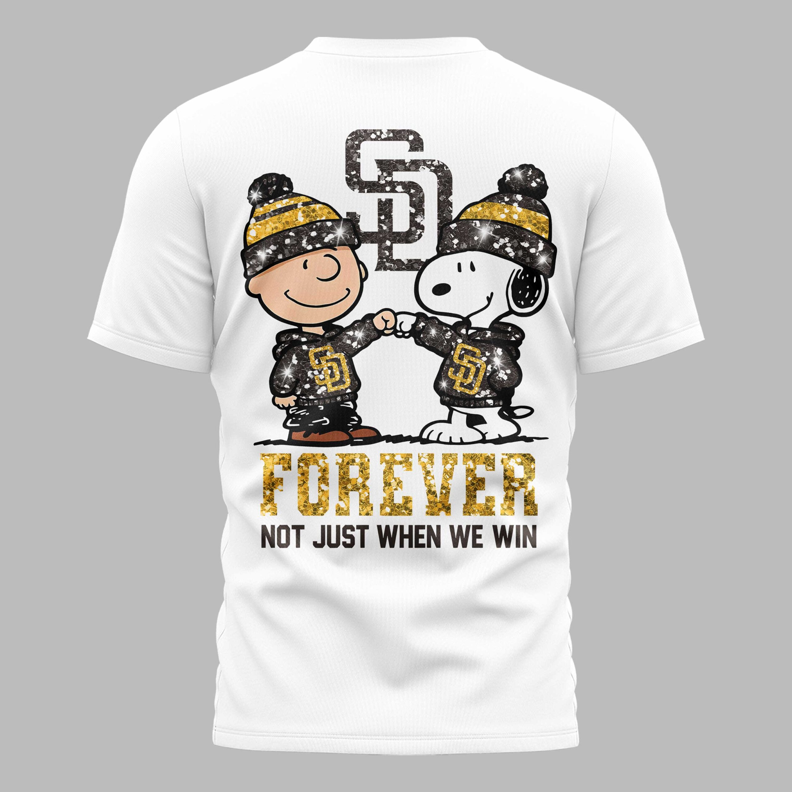 San Diego Padres “FOREVER - Not Just When We Win” Snoopy & Charlie Glitter Friendship Premium T-Shirt PH00002 San Diego Padres “FOREVER - Not Just When We Win” Snoopy & Charlie Glitter Friendship Premium T-Shirt PH00002