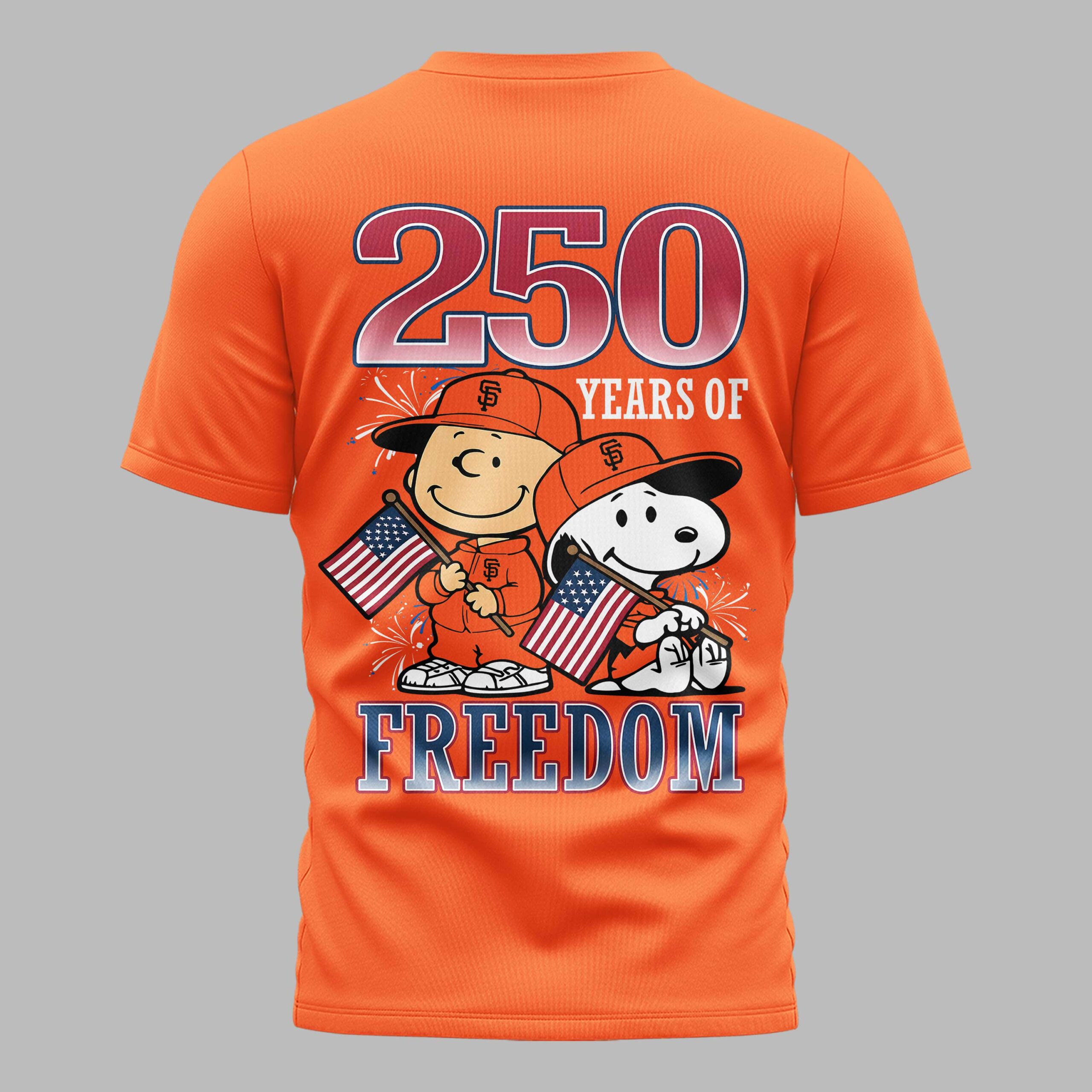 San Francisco Giants 250th Freedom Anniversary Snoopy & Charlie Friendship Premium T-Shirt PH00003