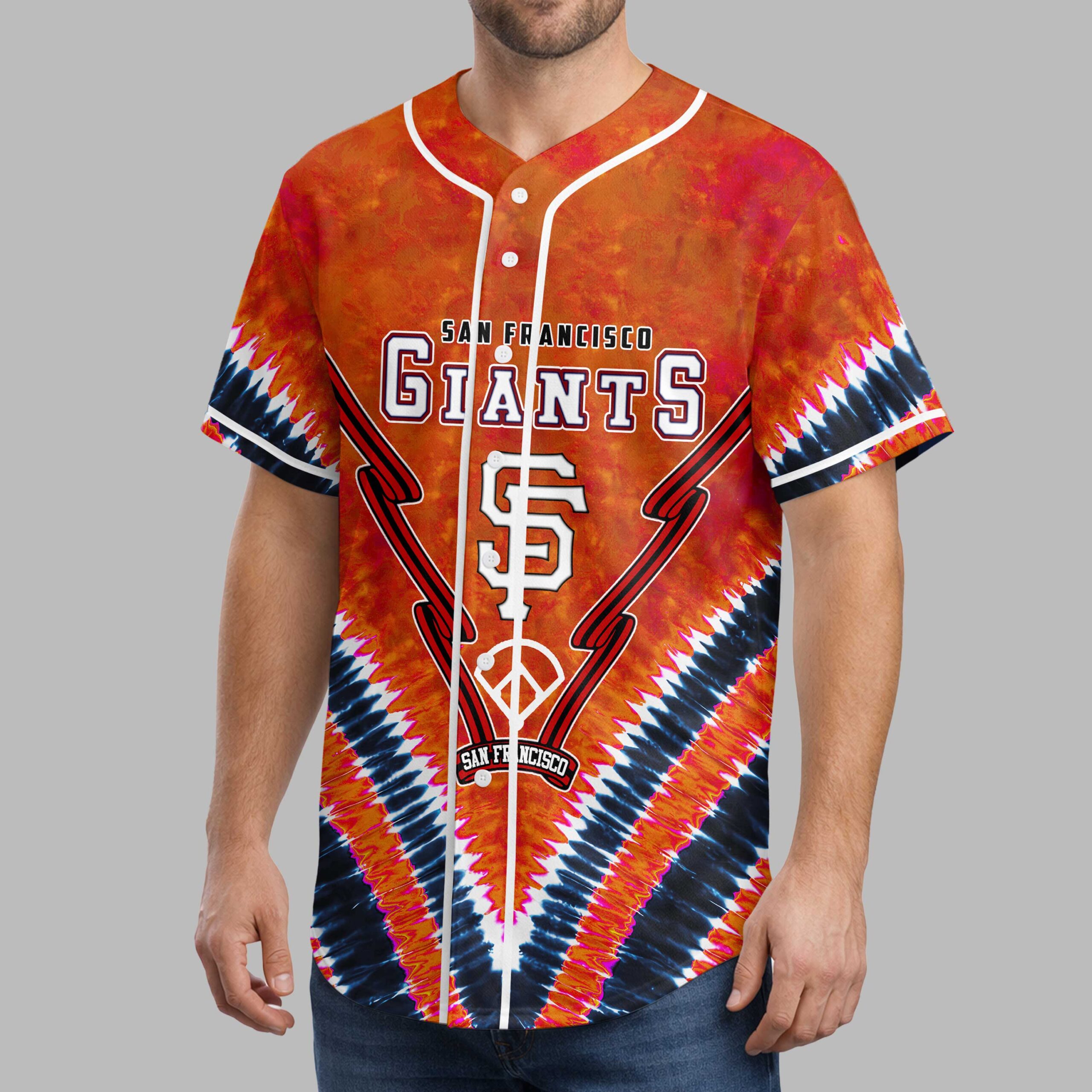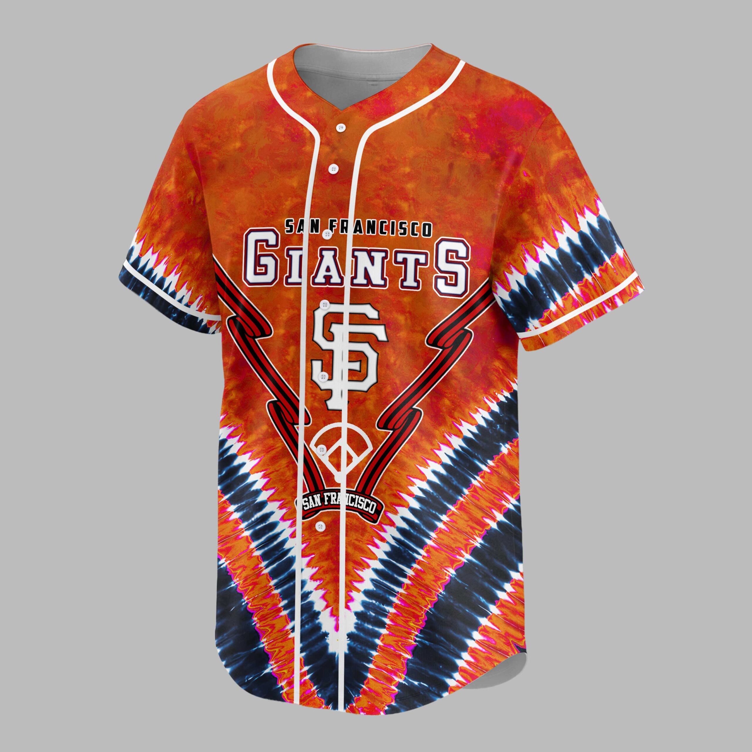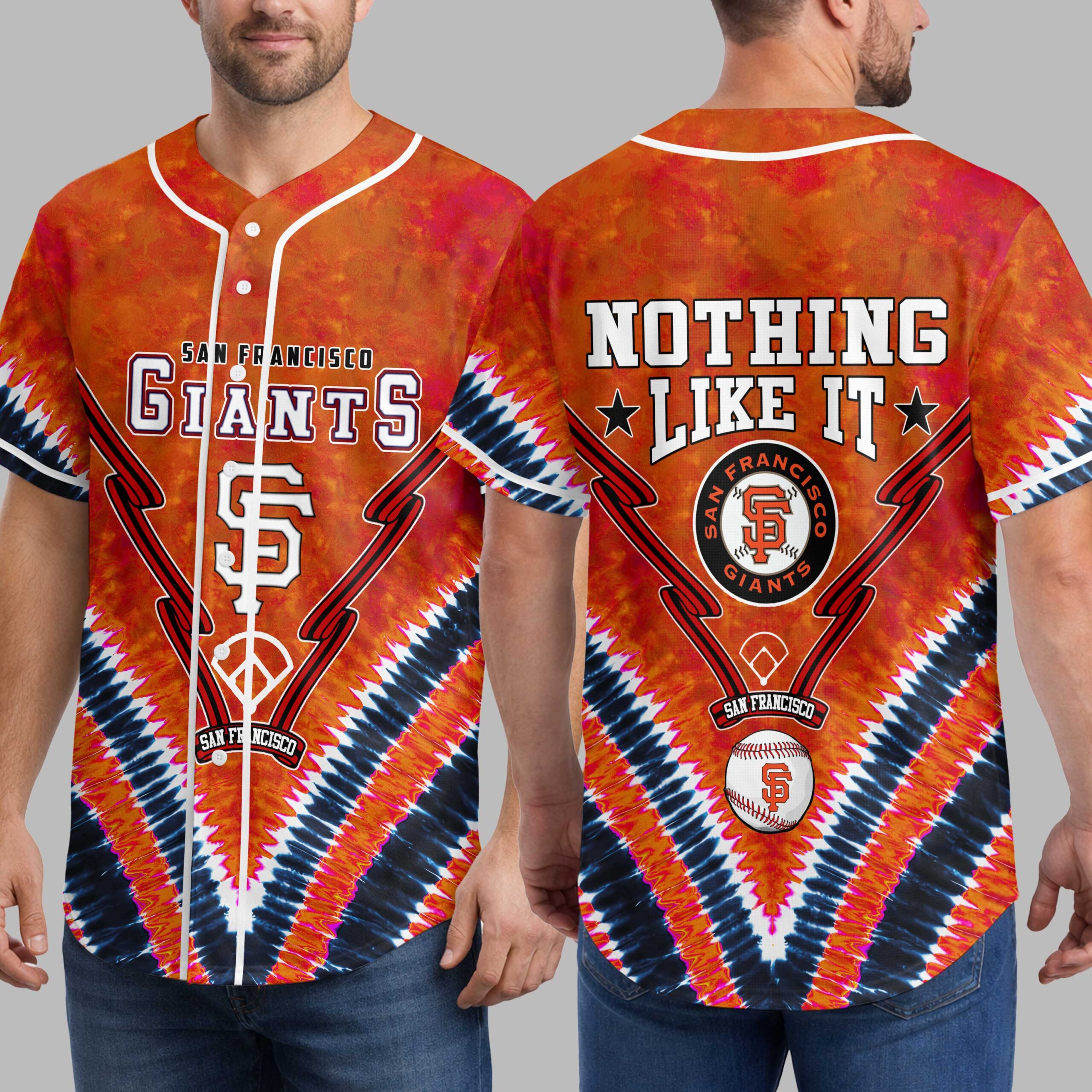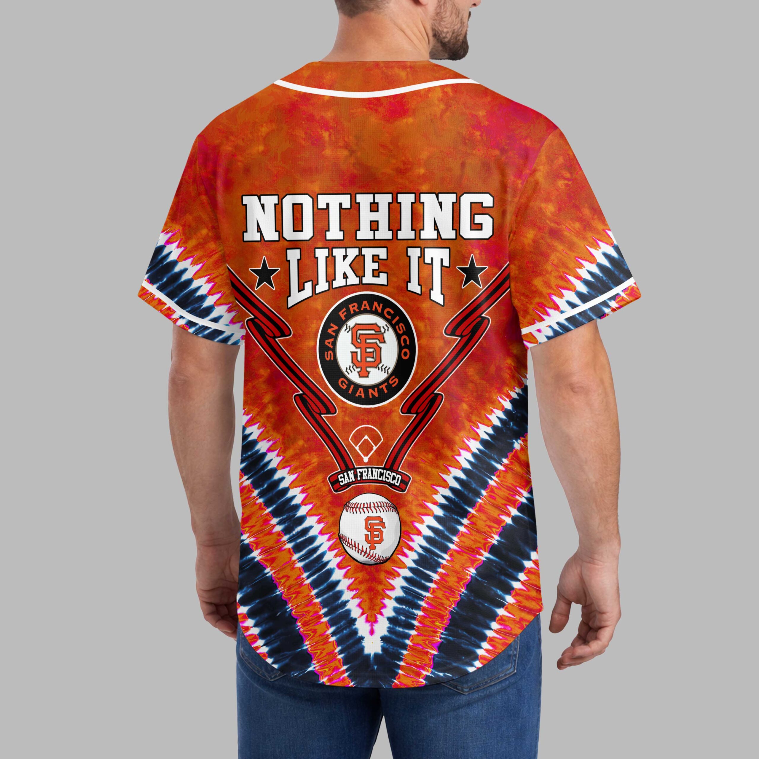 Unleash your ultimate San Francisco Giants spirit with this vibrant tie-dye baseball jersey! It’s more than just game-day wear; it’s a bold declaration of your unwavering loyalty, blending classic team pride with a distinctive, free-spirited aesthetic that truly stands out in the crowd. Crafted with an energetic orange and black tie-dye pattern, the front proudly displays SAN FRANCISCO GIANTS alongside the iconic SF logo, artfully integrated with a peace sign design and baseball stitch accents. The back echoes this passion with the slogan NOTHING LIKE IT, featuring a circular Giants logo and an SF baseball graphic, ensuring your team devotion is seen from every angle. Whether you’re catching a game at Oracle Park, enjoying a casual day out, or just want to showcase your Giants pride, this jersey is your go-to. It’s perfect for rallying with fellow fans, celebrating victories, or adding a spirited touch to any fan event.