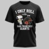 Show off your unwavering loyalty to the San Francisco Giants with this spirited fan tee! It’s the perfect way to combine your love for baseball and the beloved Peanuts character, Snoopy, in one dynamic statement of team pride. This shirt speaks volumes about where your allegiance lies, making it a must-have for any true supporter. The front design proudly features a cheerful Snoopy, decked out in his own Giants jersey and cap, giving a confident thumbs-up. Beside him sits an authentic-looking black and orange Giants batting helmet, complete with the iconic SF logo. Bold white text declares, I ONLY ROLL with the SAN FRANCISCO GIANTS, leaving no doubt about your favorite team. The back of the shirt is a classic, solid black. Whether you’re cheering from the stands at Oracle Park, hosting a game day watch party, or simply heading out for a casual day, this tee is your go-to. It’s an ideal choice for showing your Giants spirit during the season, off-season, or any time you want to celebrate your favorite baseball team.