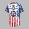 Show your Seattle Mariners pride and honor America’s 250 Years of Freedom with this striking baseball jersey. Its vibrant red, white, and blue flag design powerfully blends team loyalty with a patriotic tribute, making it essential for any fan dedicated to both their team and country. The front features MARINERS above the iconic Statue of Liberty, set against the flag design. A 250 Years of Freedom emblem, with an eagle and 1776-2026 dates, highlights the anniversary. The back displays a large Seattle Mariners compass logo alongside the same commemorative 250 Years of Freedom graphic, integrated into the flag pattern. Perfect for T-Mobile Park gamedays, Fourth of July events, or any occasion to proudly represent your Mariners and America, showcasing your spirit, patriotism, and dedication to freedom with this bold jersey.