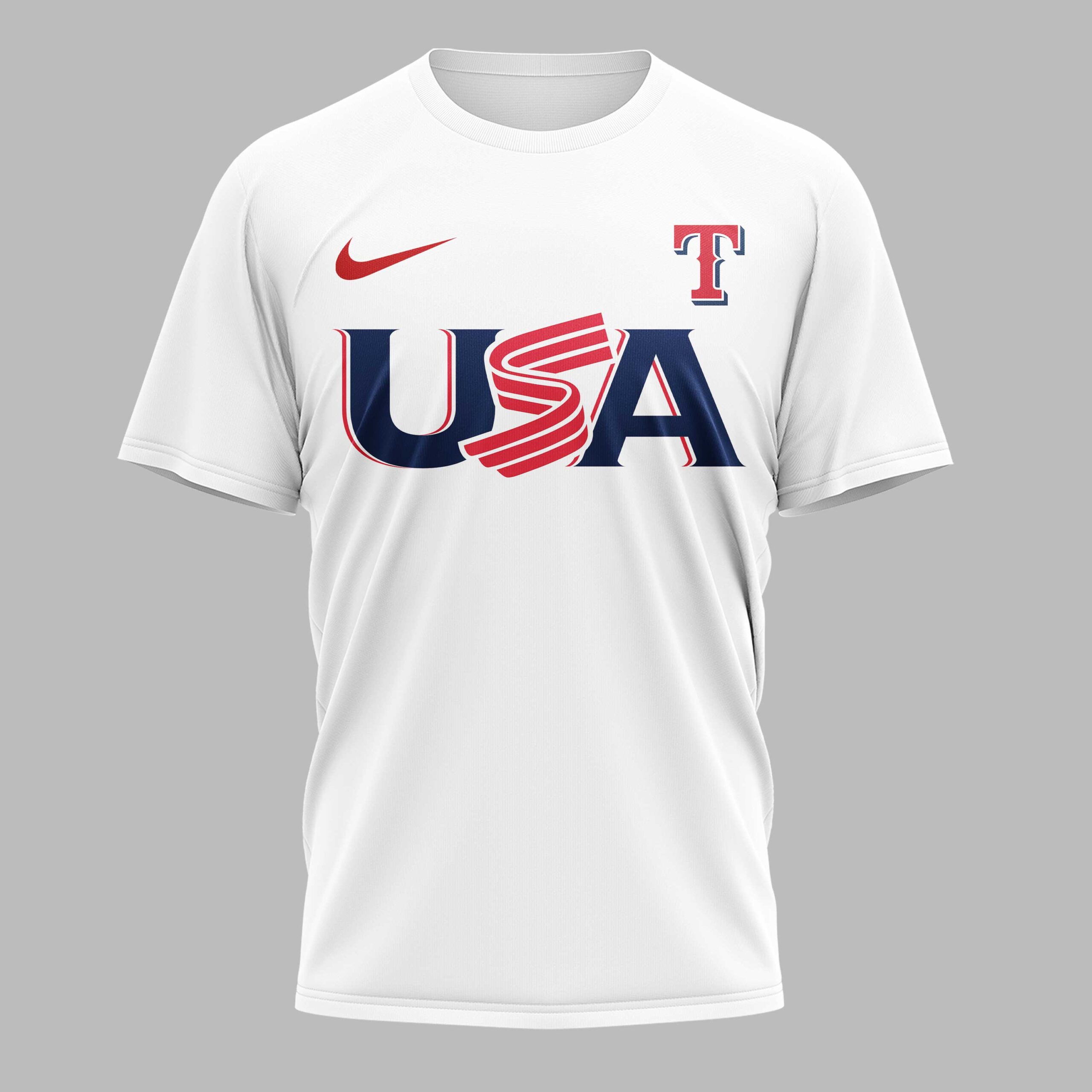 Show your Texas pride and celebrate a historic milestone with this Texas Rangers USA 250 Independence T-Shirt. This white tee is designed for dedicated fans, combining the spirit of the Rangers with a powerful tribute to the nation’s 250th anniversary. The front features a bold, stylized USA graphic alongside the iconic Rangers T logo and a classic swoosh. On the back, an eye-catching design showcases Texas Rangers arched over a large red T and flanked by stars. The centerpiece is the commemorative Celebrating America’s 250th graphic, which artfully integrates a baseball into the 250 for a true fan finish. This shirt is a home run for game days at the stadium or Independence Day celebrations. It’s the ultimate way to honor both your team and your country, whether you’re at the ballpark or enjoying everyday fan wear.