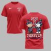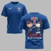 Declare your unwavering support for the Texas Rangers with this delightful and spirited fan tee! Perfect for the dedicated fan, this shirt captures the heart of true loyalty, showing that your team spirit shines bright, win or lose. It’s more than just game day attire; it’s a statement of lifelong dedication to your favorite baseball team. The front features a classic, stylized T logo, subtly showcasing your team allegiance. The back of the shirt truly brings the fandom to life with an eye-catching design: a large T logo anchors the top, while beloved characters Charlie Brown and Snoopy, sporting festive red and blue hats and hoodies with their own Ts, share a celebratory fist bump. Below them, the bold red glitter text FOREVER and blue NOT JUST WHEN WE WIN proudly proclaim your steadfast support. Whether you’re cheering from the stands, gathering with friends for a watch party, or simply enjoying a casual day out, this shirt is ideal for expressing your Texas Rangers pride year-round. It’s a fantastic way to celebrate your team and share your love for baseball with a fun, classic touch.