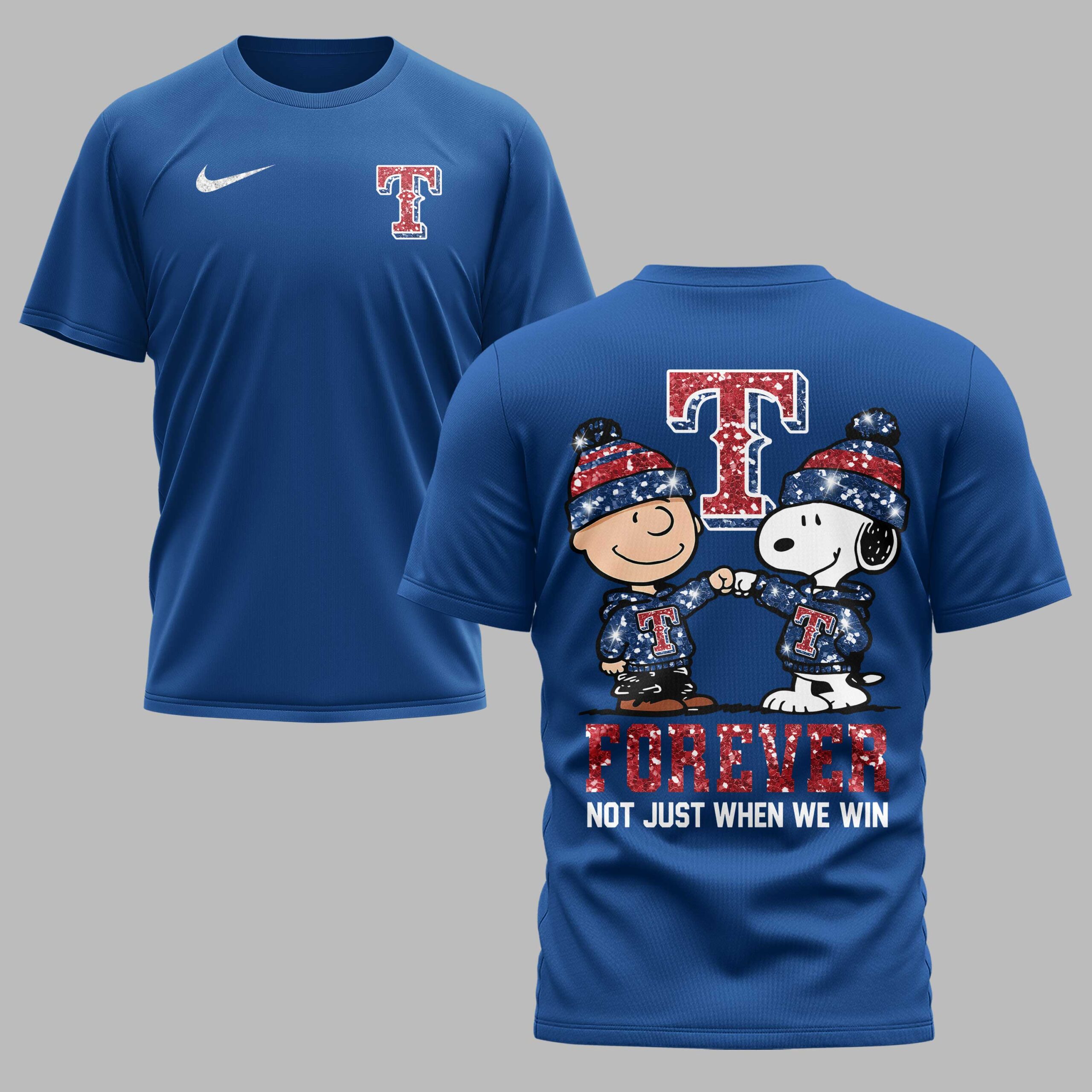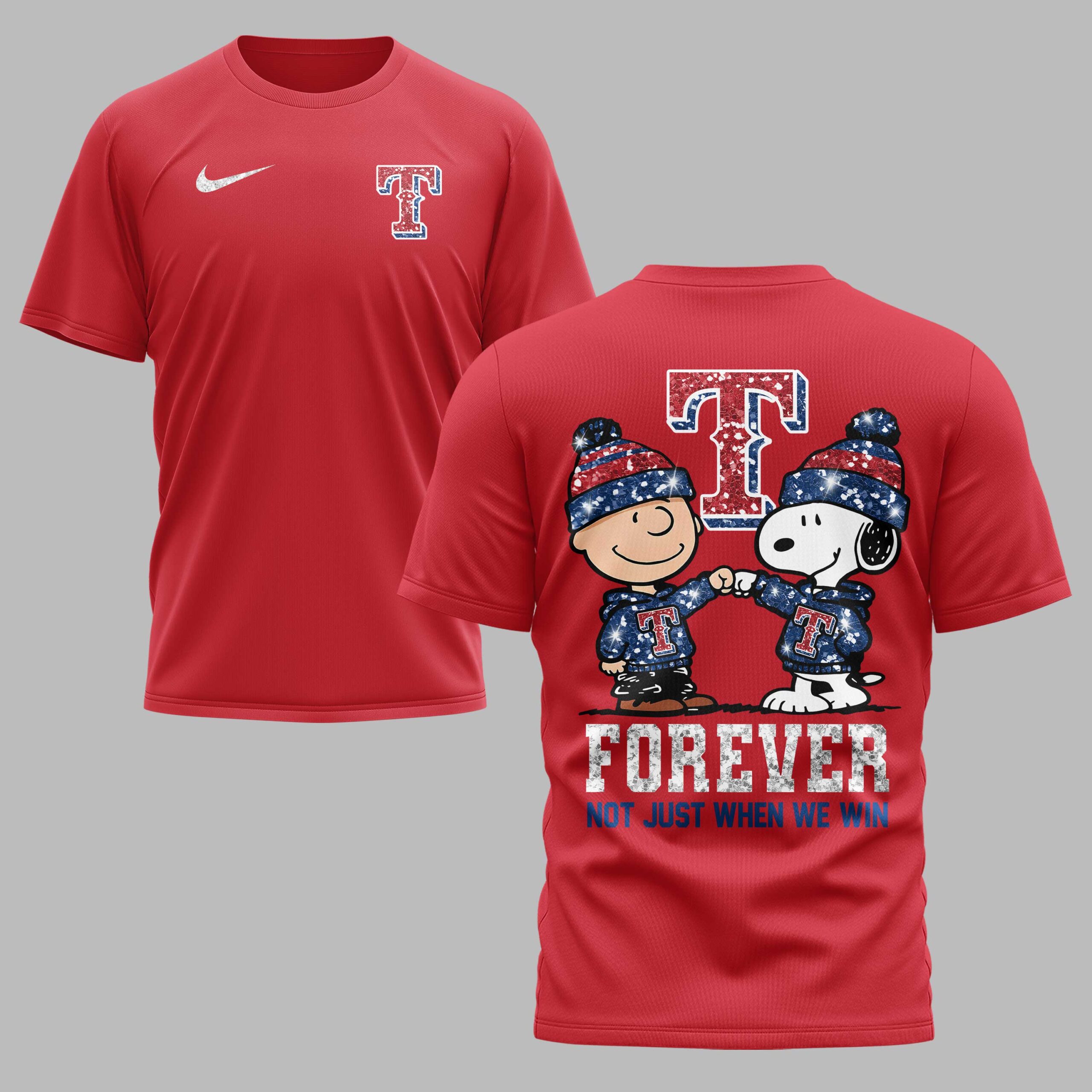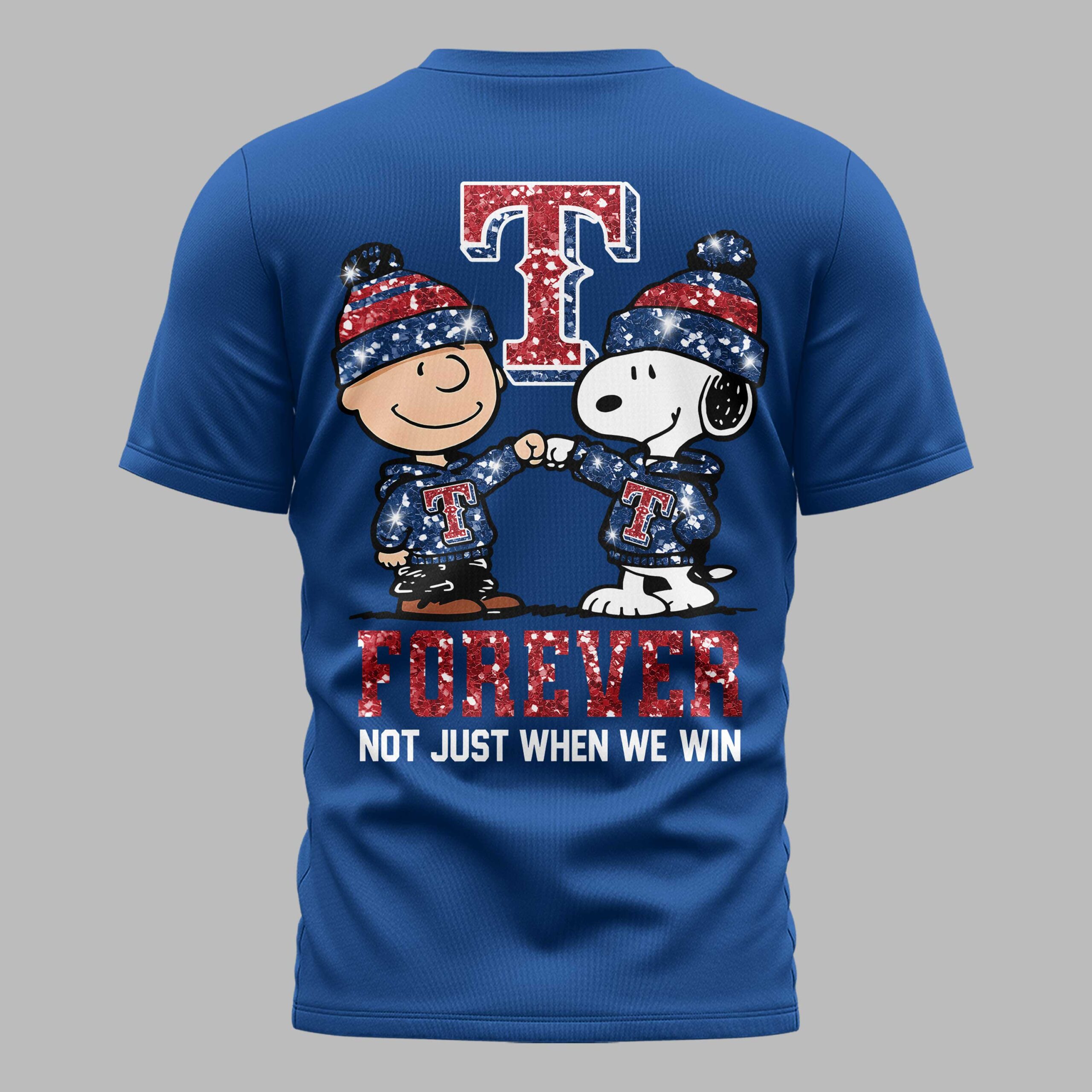 Texas Rangers “FOREVER - Not Just When We Win” Snoopy & Charlie Glitter Friendship Premium T-Shirt PH00002