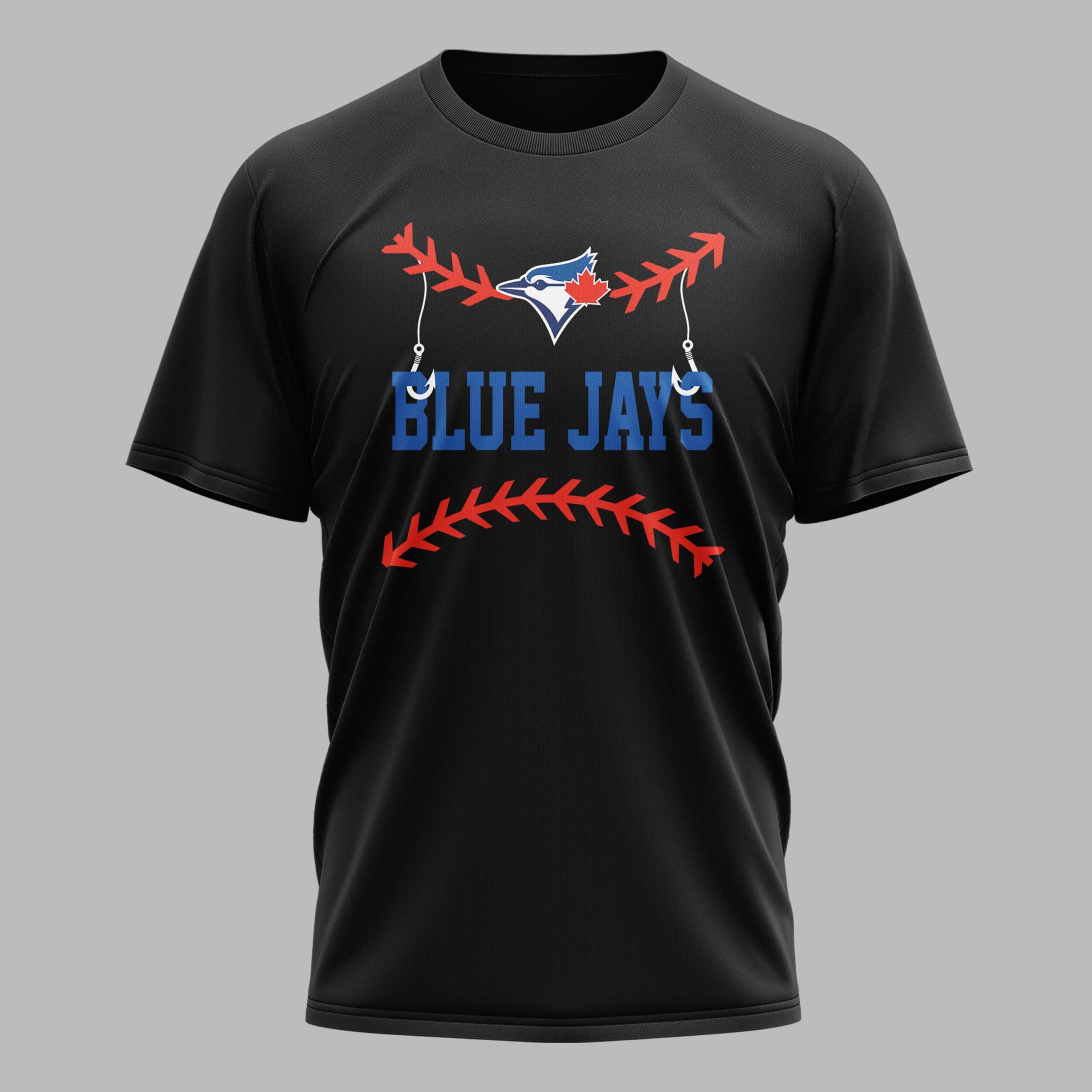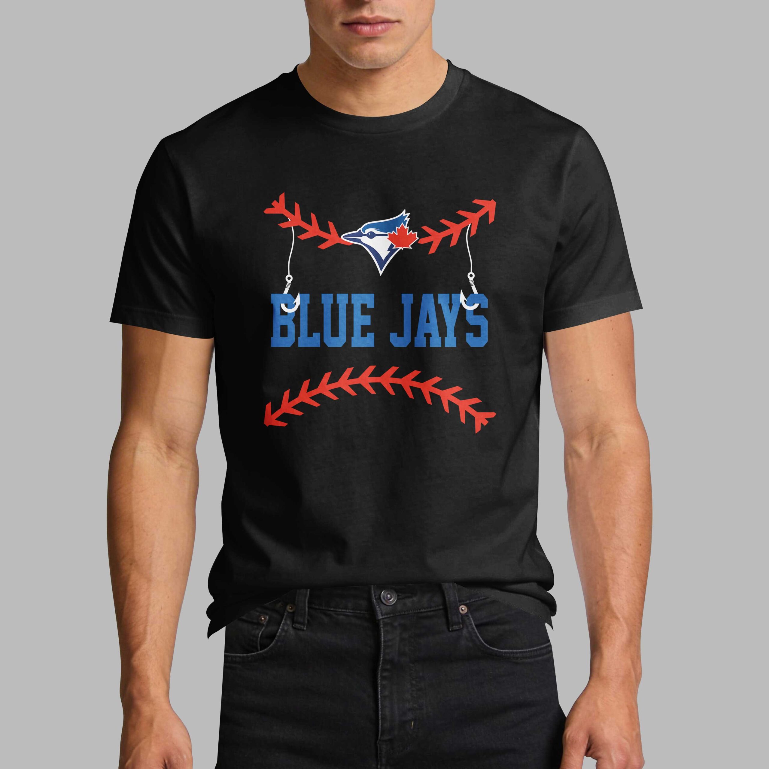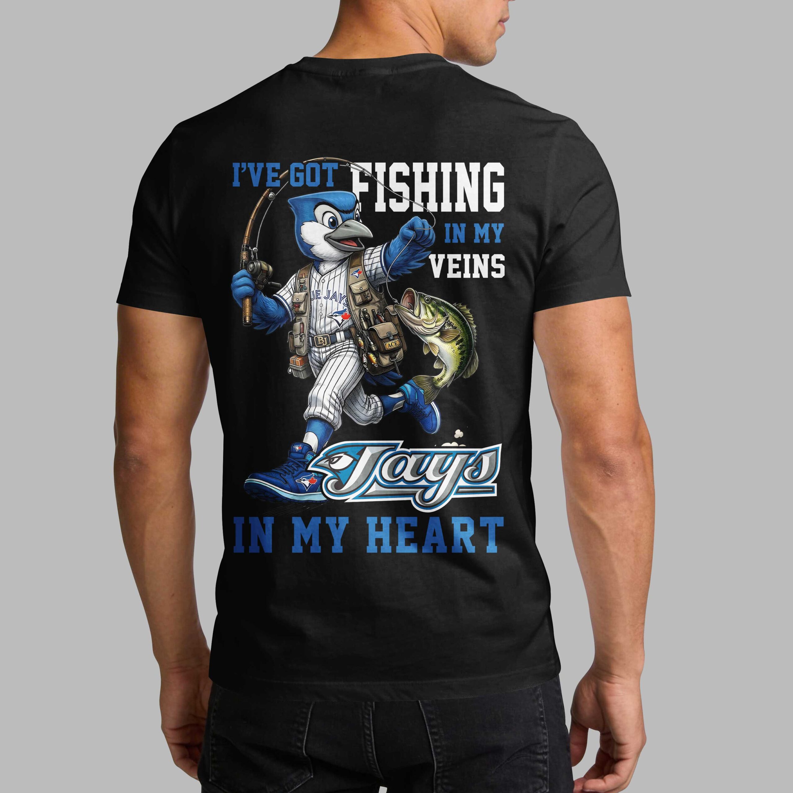 Show your unwavering support for the Blue Jays and your passion for fishing with this unique T-shirt! It’s the perfect way to celebrate your two favorite pastimes, blending the excitement of baseball with the tranquility of the open water. This tee is designed for the ultimate fan who lives for both game days and glorious catches. The front of the shirt features the iconic Blue Jays logo creatively integrated with a fishing hook and line, all framed by classic baseball stitching. The back showcases an awesome graphic of the Blue Jays mascot, fully geared up in pinstripes and a fishing vest, proudly holding his catch, a largemouth bass, with the bold declaration, I’VE GOT FISHING IN MY VEINS, JAYS IN MY HEART. This dynamic shirt is perfect for rocking at the ballpark, casting lines on your next fishing trip, or simply relaxing while proudly displaying your dual passions. It’s a grand slam for any enthusiast who loves hitting the stadium as much as they love hitting the lake.
