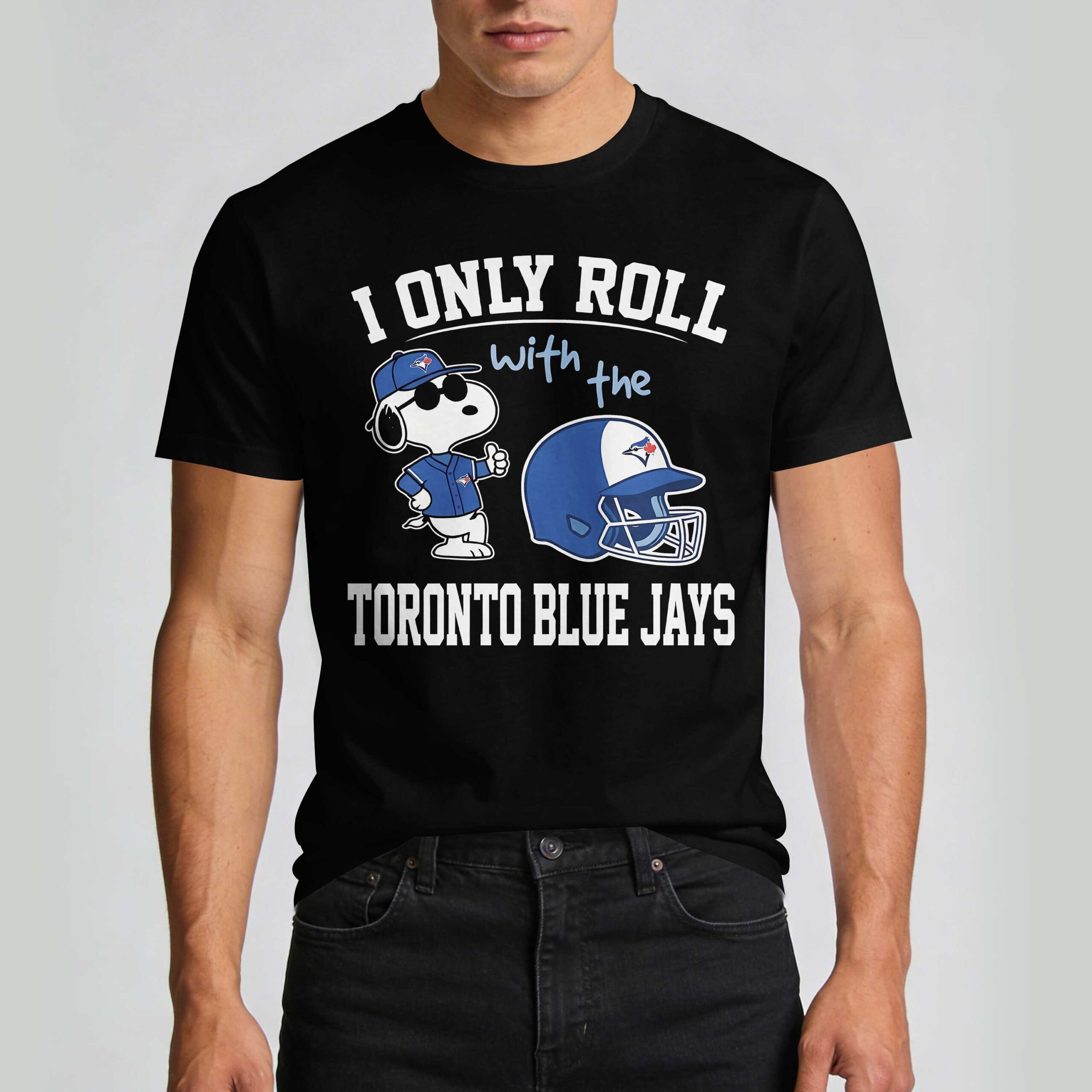 Show your unwavering team spirit with this fun and spirited Toronto Blue Jays fan tee! Perfect for any devoted supporter, this shirt captures the playful side of fandom while declaring your allegiance to one of baseball’s most exciting teams. Get ready to cheer on the Blue Jays in style and comfort, letting everyone know where your loyalty lies. The front of the shirt features an iconic design with Snoopy sporting a cool blue baseball cap and jersey, giving a confident thumbs-up. Beside him rests a classic Toronto Blue Jays helmet, complete with the team’s distinctive bird logo and red maple leaf accent. Bold text proudly states, I ONLY ROLL with the TORONTO BLUE JAYS, making your dedication undeniable. This vibrant tee is ideal for game days at the ballpark, casual gatherings with fellow fans, or simply representing your favorite team around town. Wear it to watch parties, family BBQs, or whenever you want to showcase your love for the Toronto Blue Jays in a uniquely charming way.