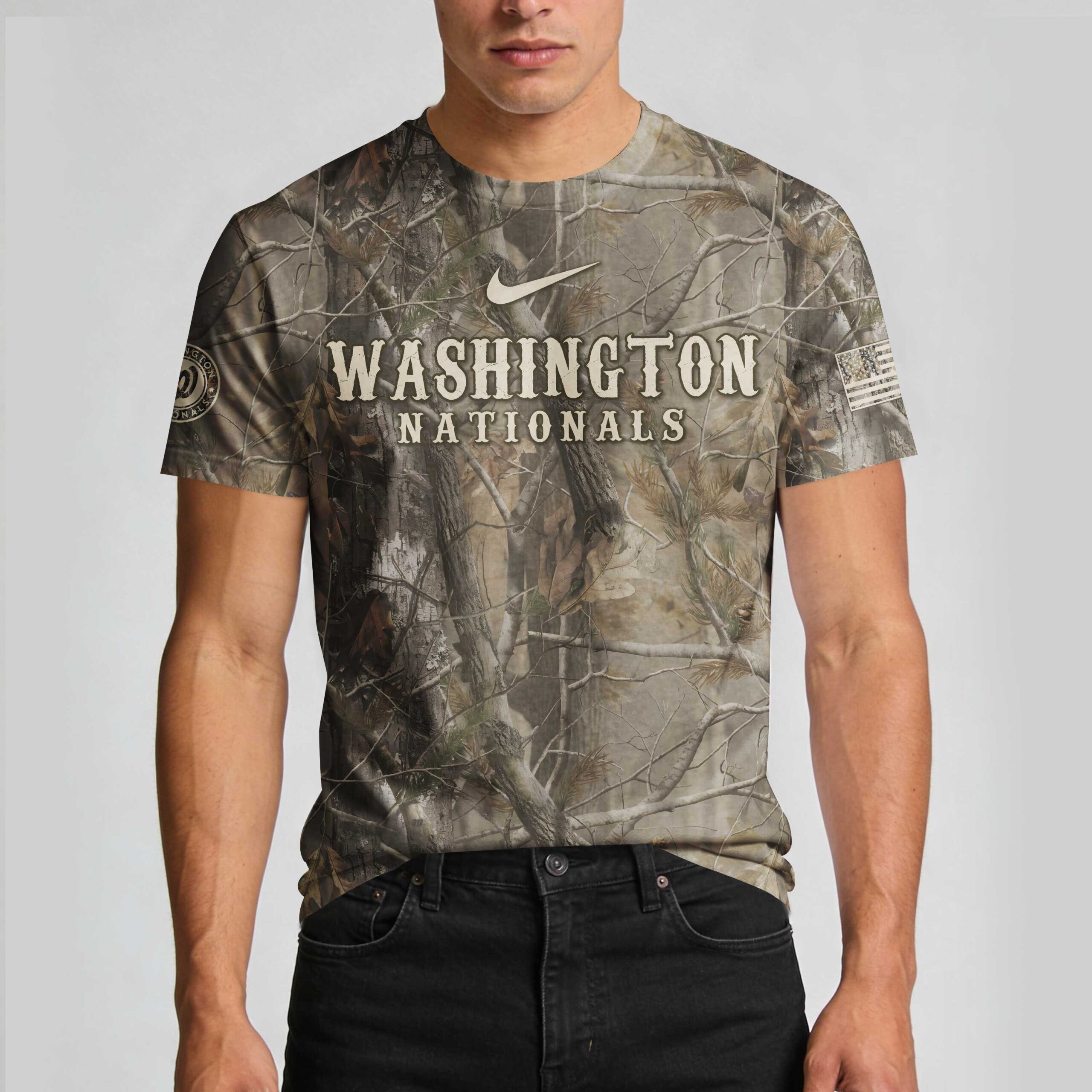 This unique camo shirt is perfect for Washington Nationals fans who also share a deep love for the great outdoors and hunting. It’s a bold statement piece that perfectly blends your passion for America’s favorite pastime with your adventurous spirit, showing off your dual loyalties with style and pride. The front of the shirt proudly displays WASHINGTON NATIONALS over a realistic camouflage backdrop, complete with a subtle American flag accent on the sleeve. The back is where your two passions truly unite, featuring deer antlers, a baseball with the iconic W logo, and crossed bats, all beneath the powerful declaration, I’VE GOT HUNTING IN MY VEINS AND NATIONALS IN MY HEART. Whether you’re at the ballpark cheering on the Nats, out in the wilderness pursuing your hunting passion, or simply enjoying a casual day, this shirt lets you represent your dedication to both. It’s ideal for game days, hunting trips, casual outings, or any occasion where you want to showcase your unique blend of team spirit and love for nature.